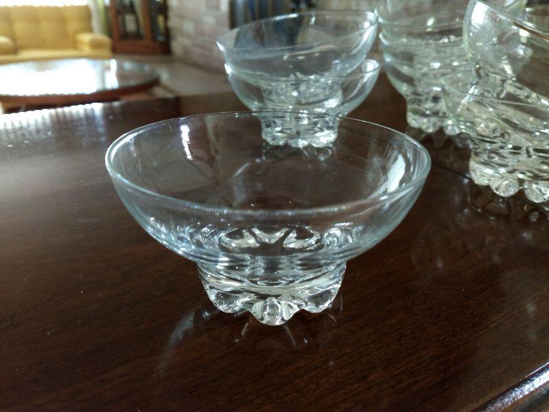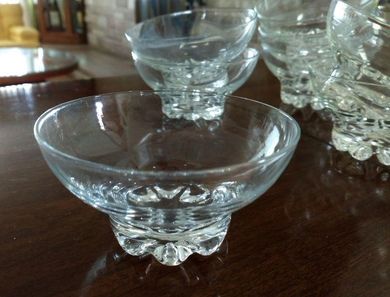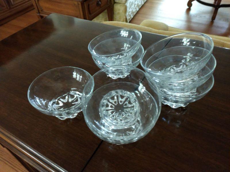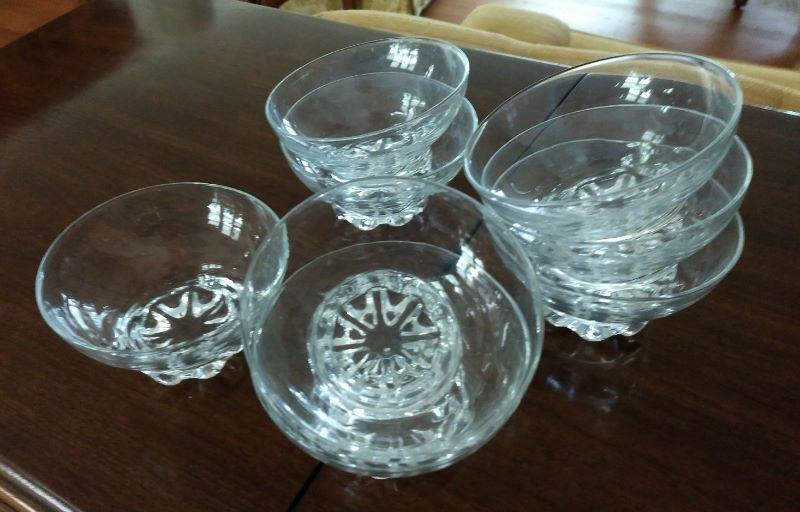 Set of Eight Footed Fancy Clear Glass Dessert Cups