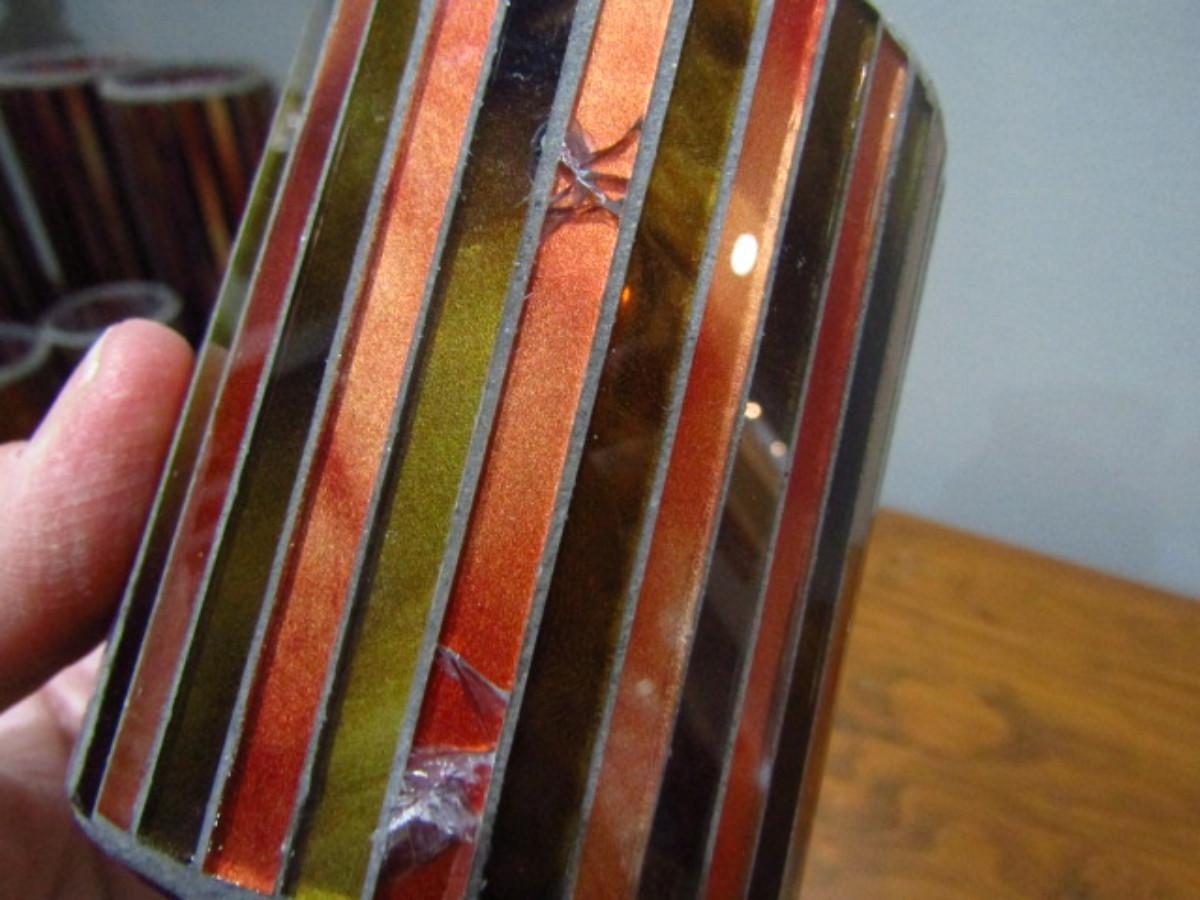 Set of Eight Glass Mosaic Candle Holders (LR). Please see all pictures- one has some damage.