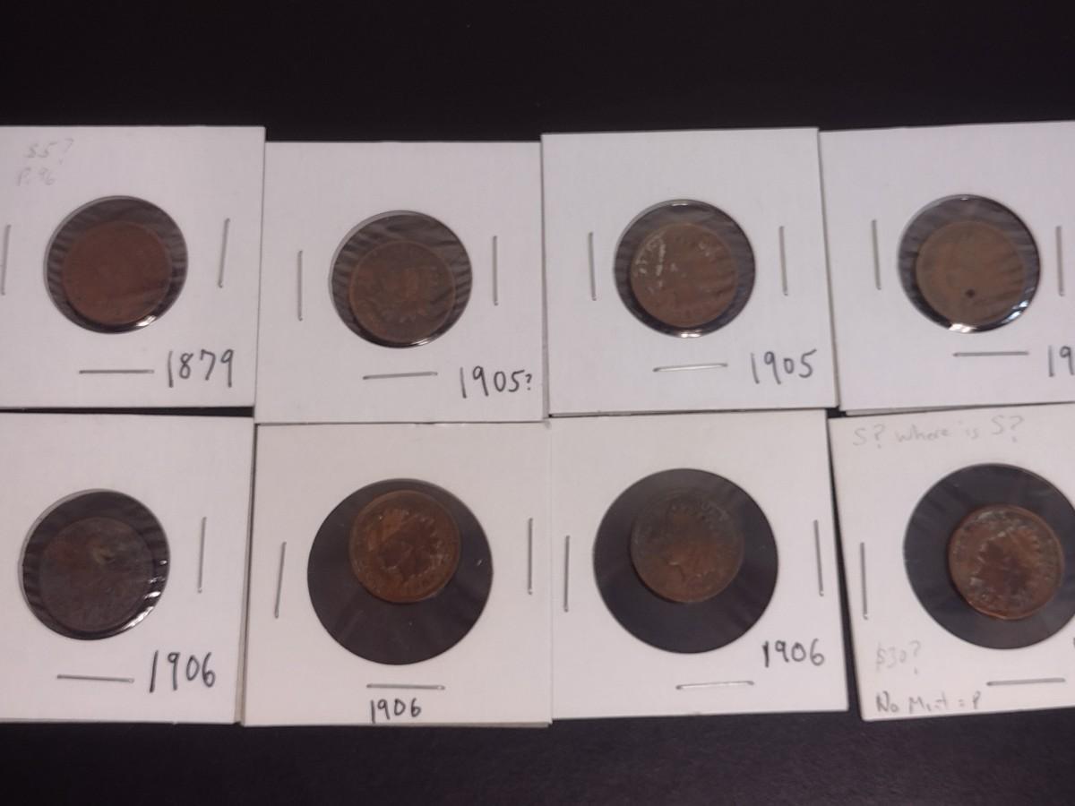 Set of Eight Indian Head Pennies Various Dates Circulated Condition (25)