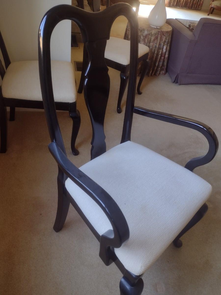 Set of Eight Italian Black Lacquer Finish Dining Tables incudes One Carver Chair