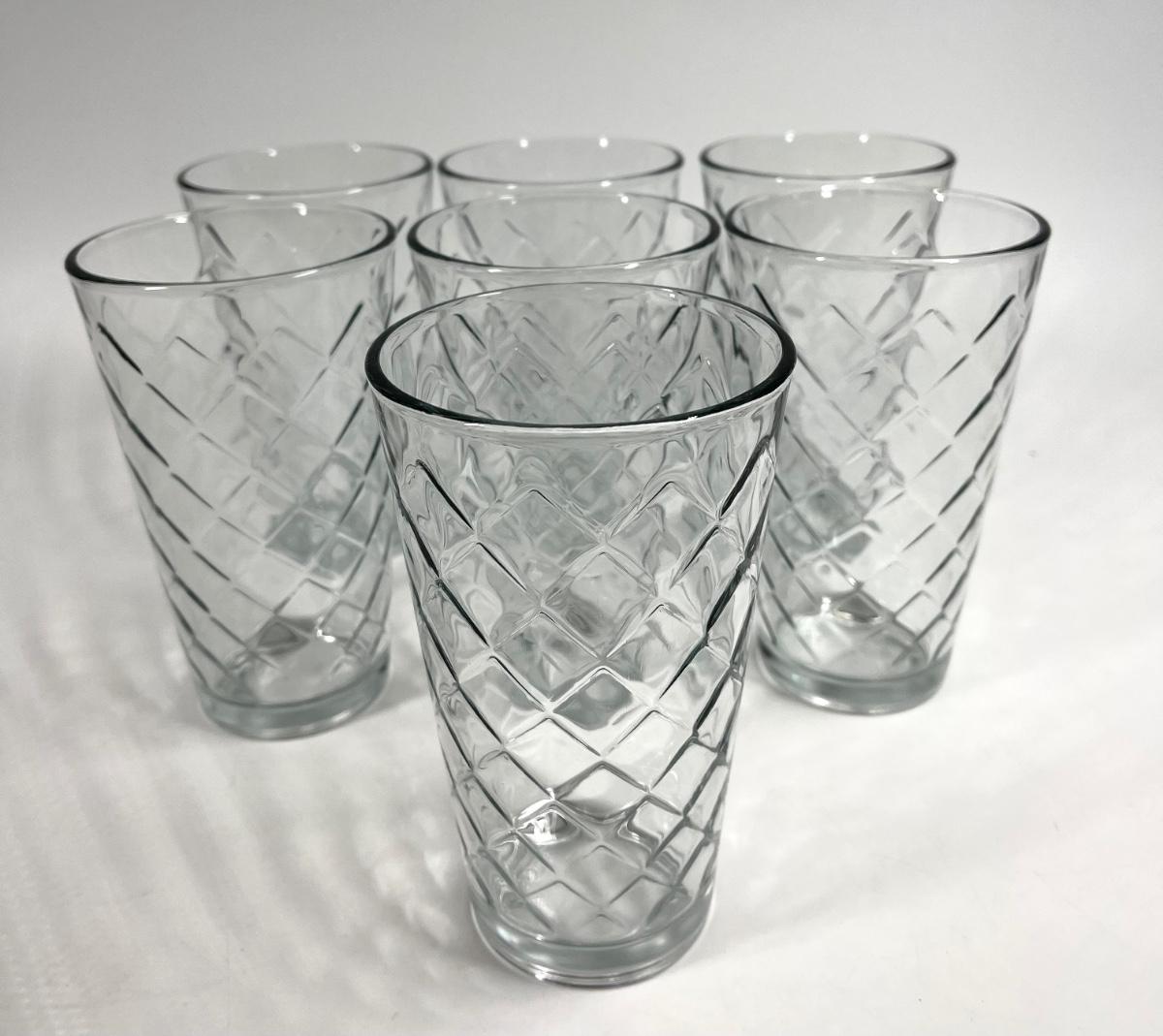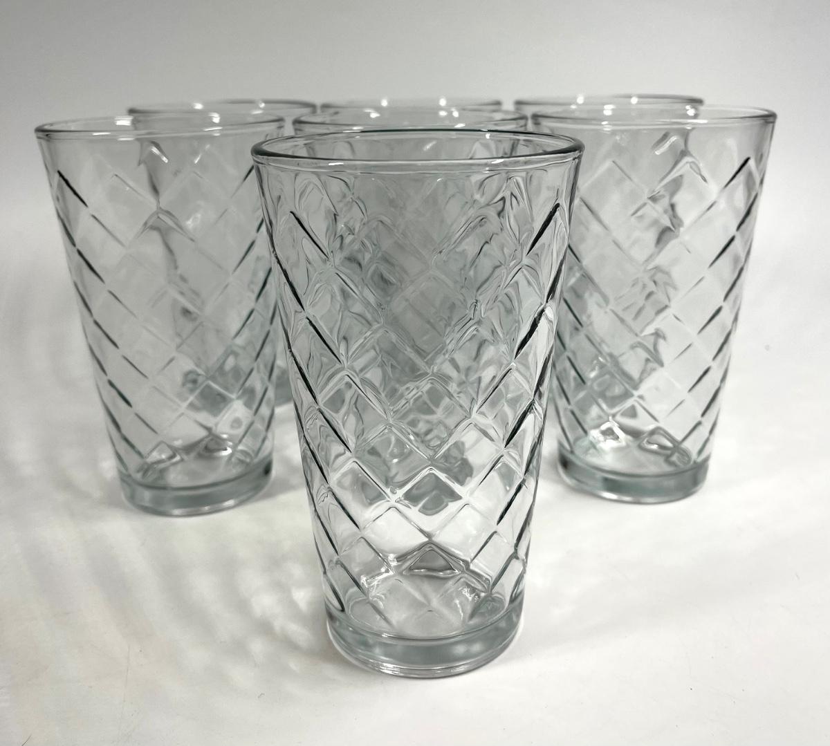 Set of Eight Tall Diamond Pattern Drink Glasses