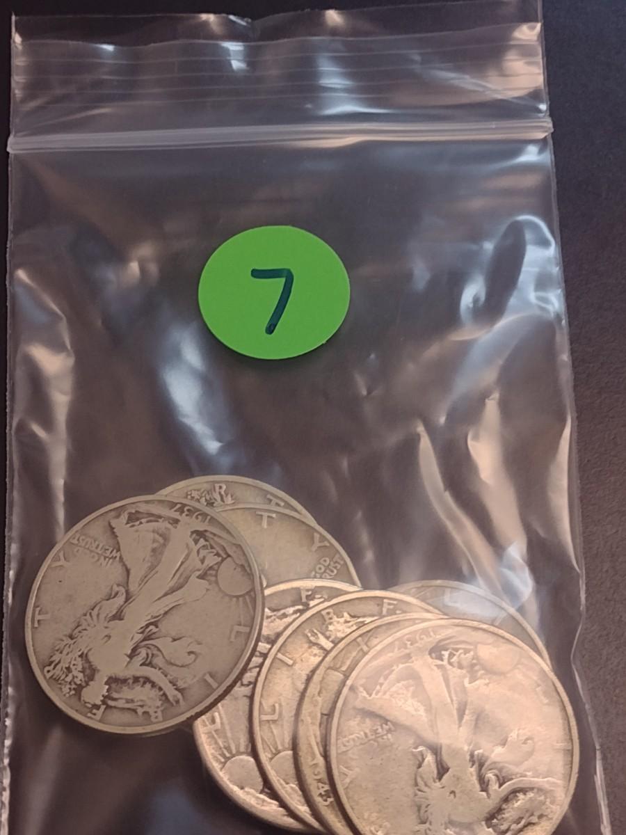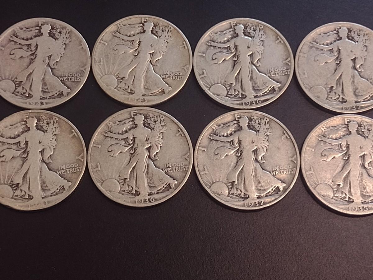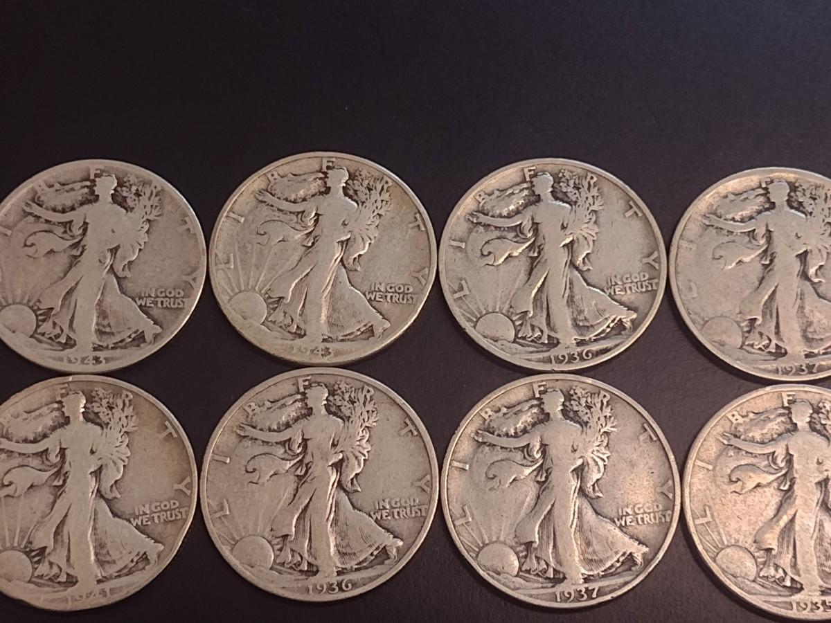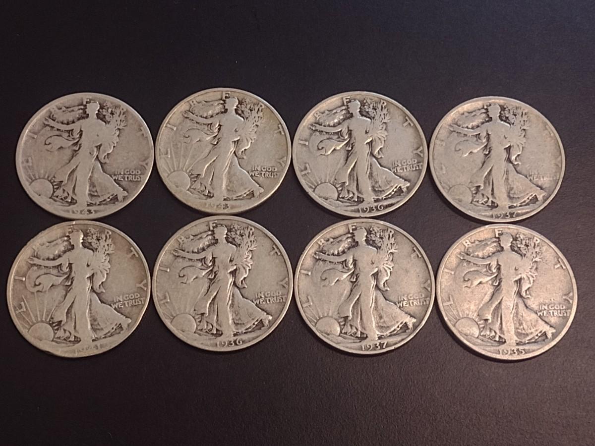 Set of Eight U.S. Mint Walking Liberty Silver Half Dollars Various Dates Circulated (7)