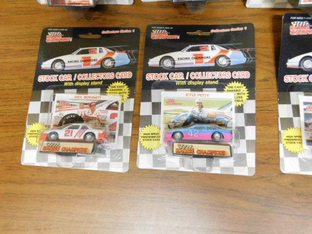 Set of Eight Vintage Racing Champions NASCAR Die Cast Stock Cars with Driver's Trading Card