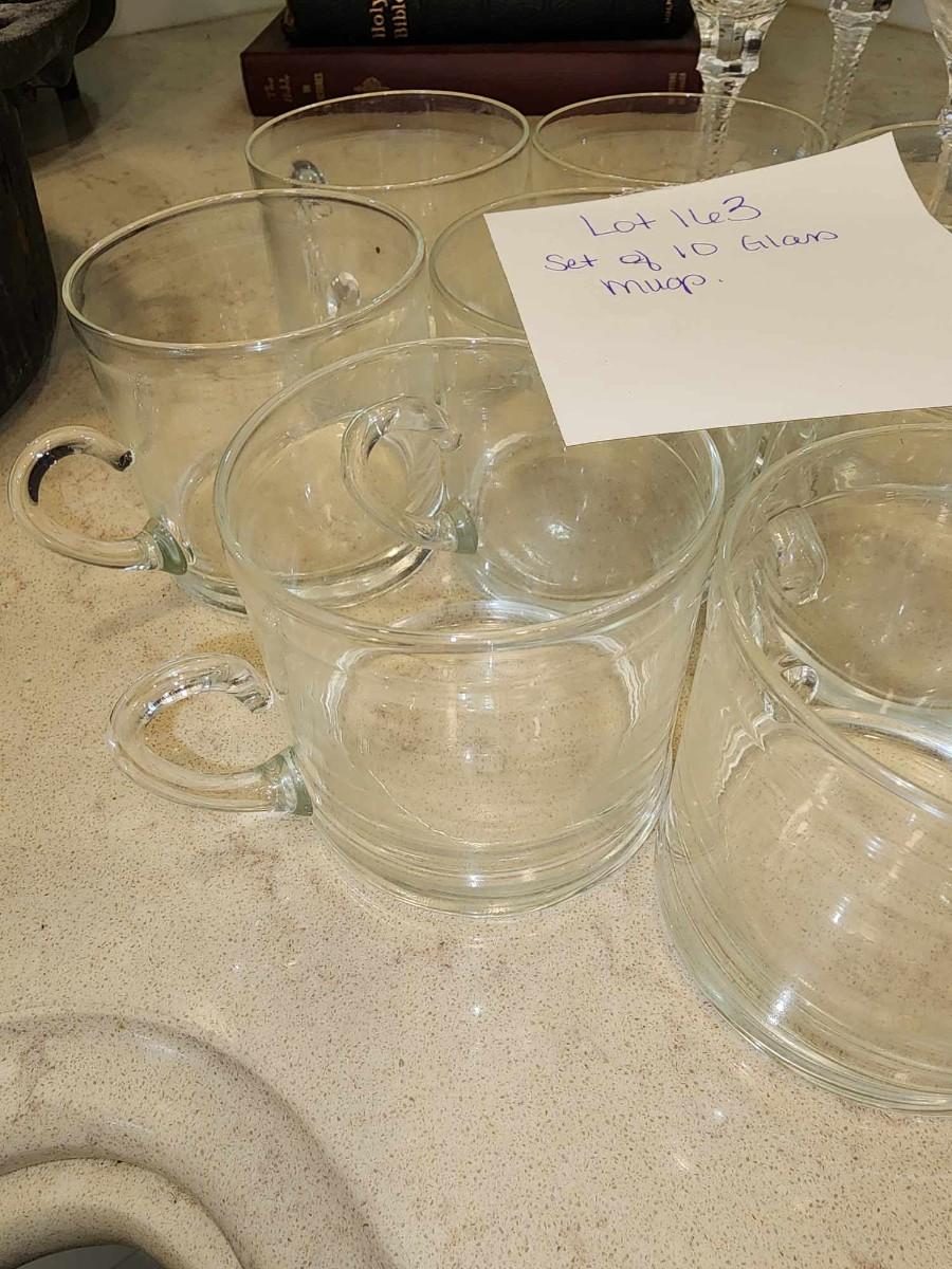 10 pieces. small glass mugs. Would be espresso size servings