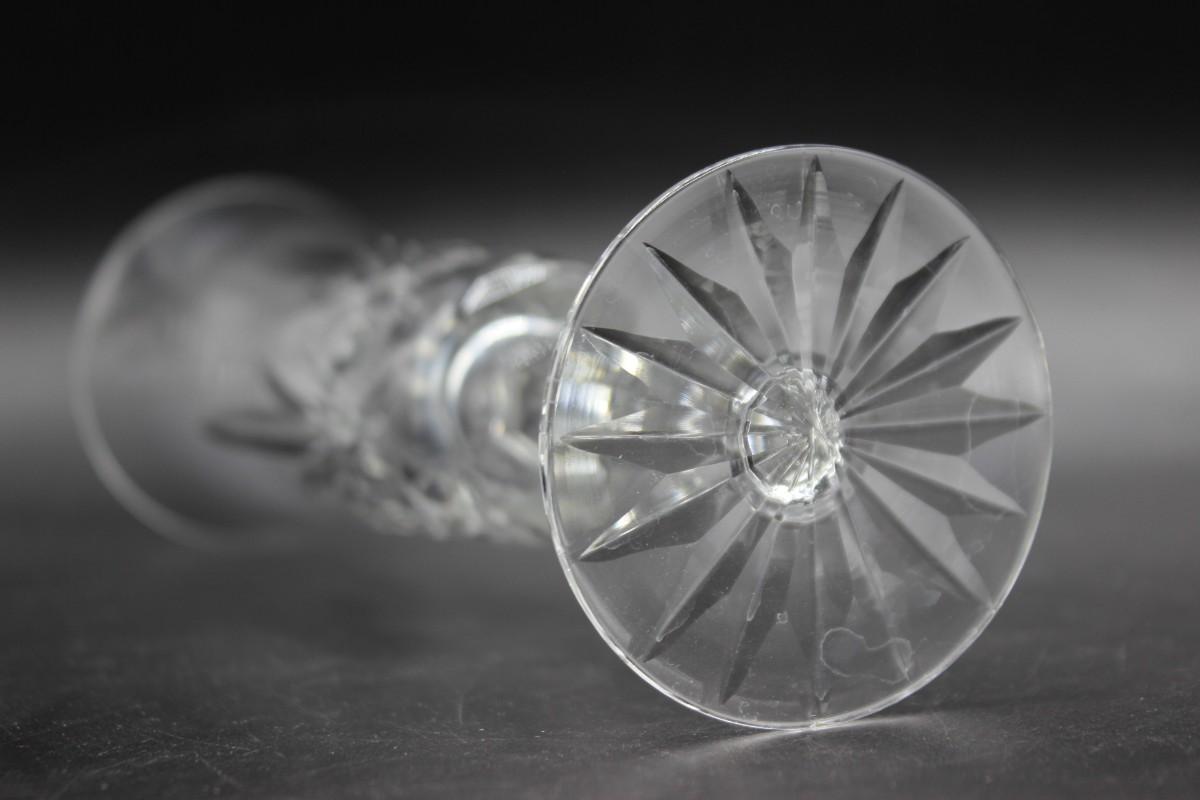 Set of Etched & Designed Crystal Glass Wine Drinking Glasses, there are no cracks or chips to the glass and is in good useable quality and condition. Check pictures for more details and for sizng.