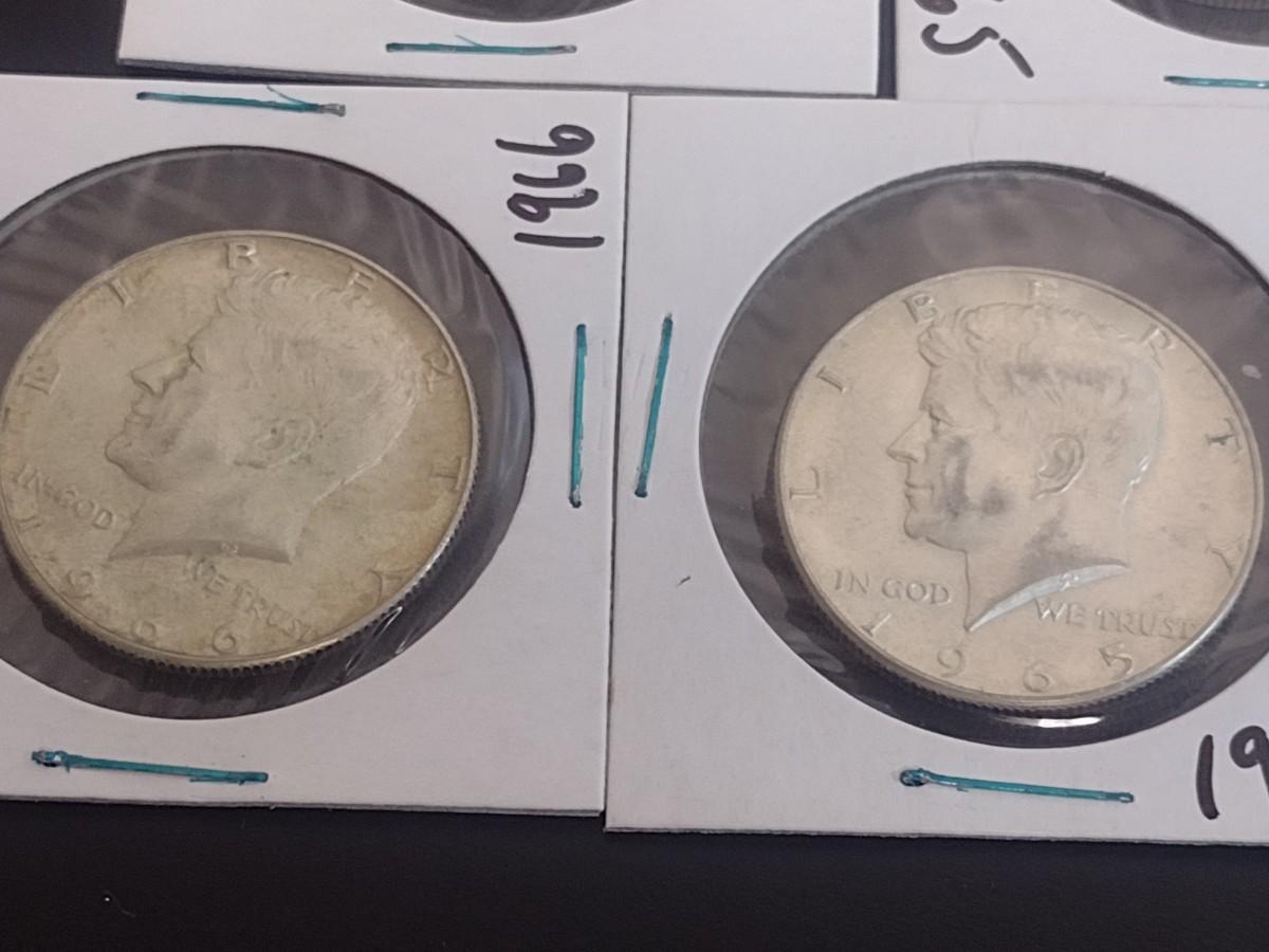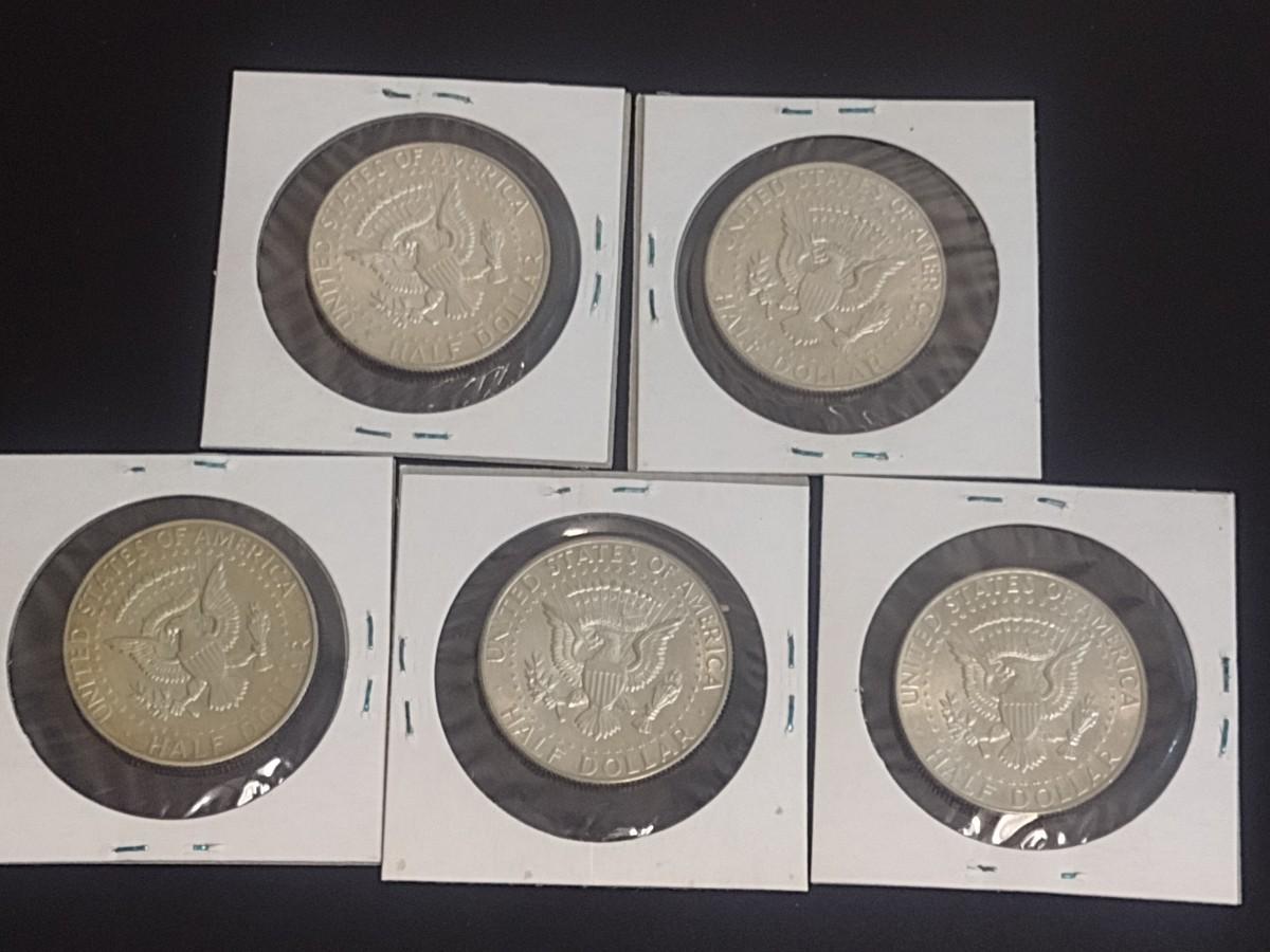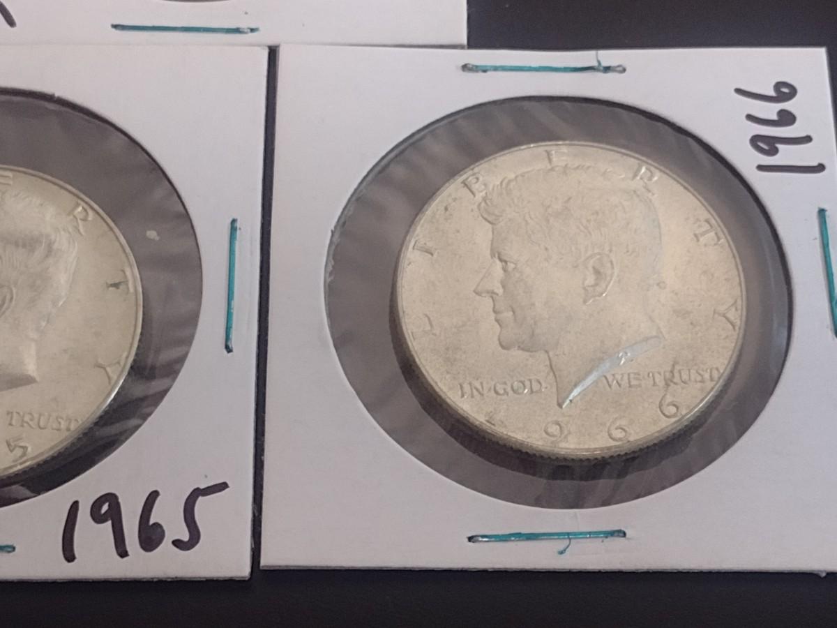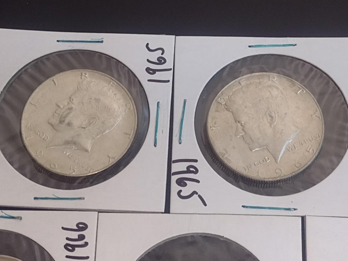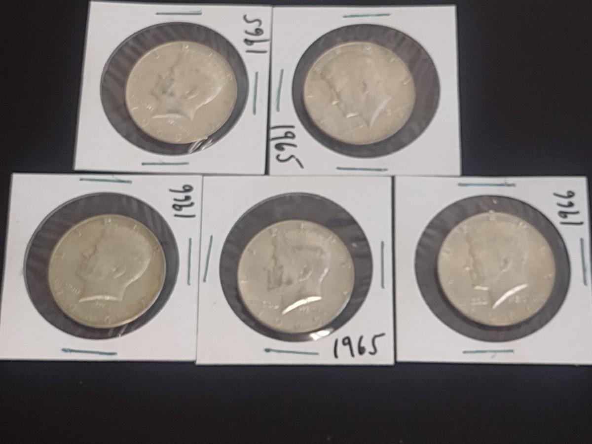 Set of Five 1965-1966 Kennedy 40% Silver Half-Dollars Circulated (16)