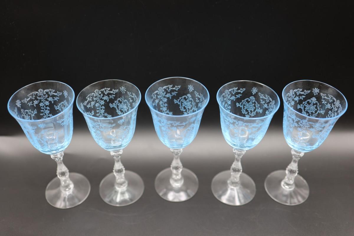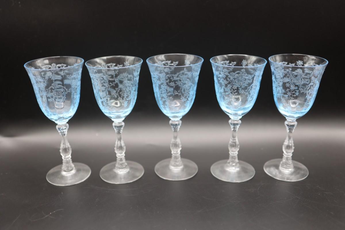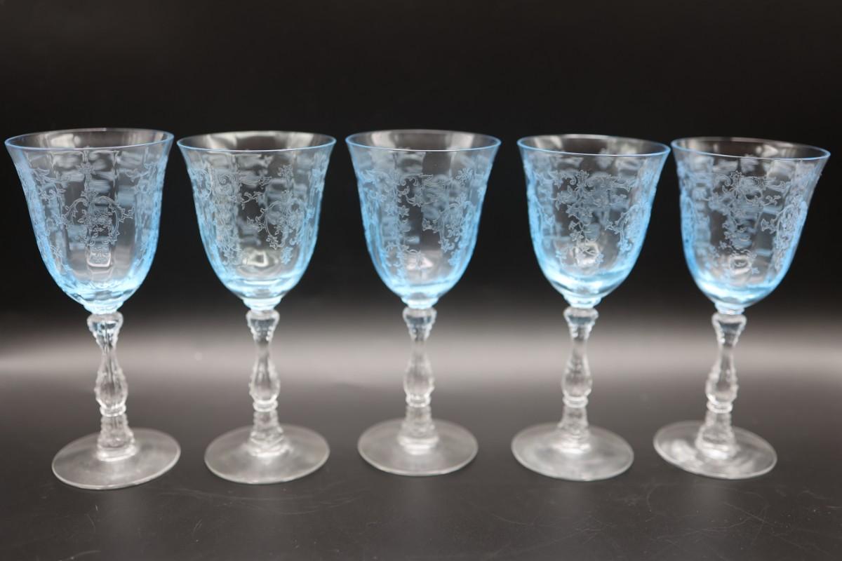 Set of Five (5) Fostoria Navarre Azure Blue Glasses