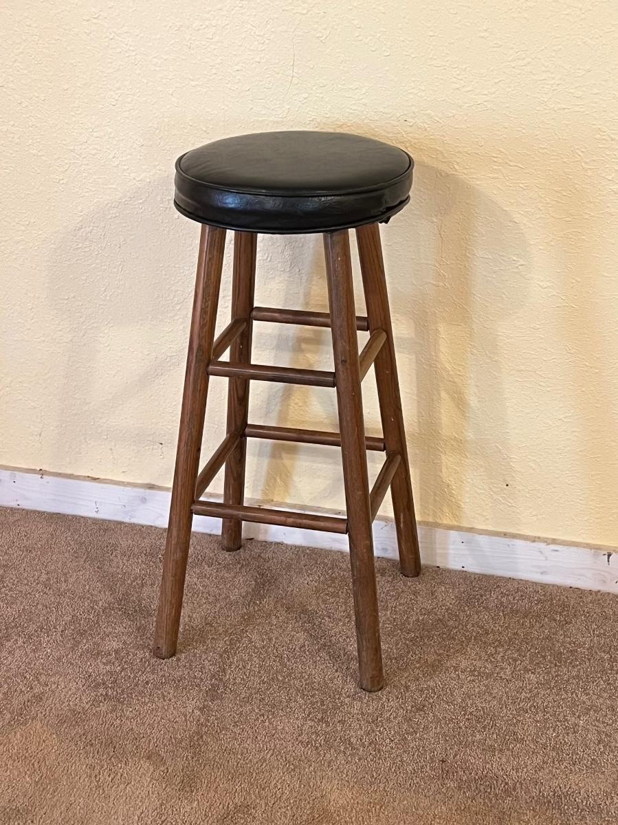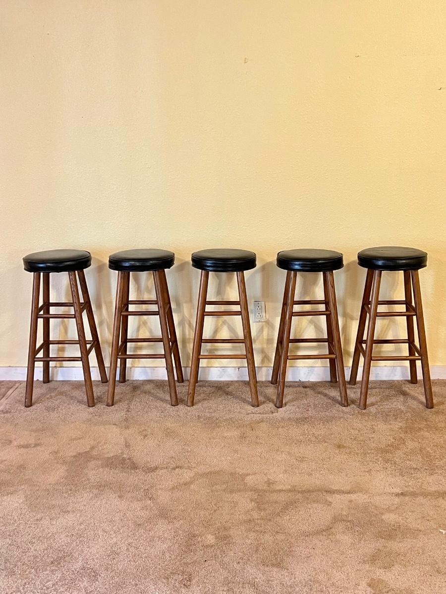 Set Of Five (5) ~ Wood & Vinyl Bar Stools