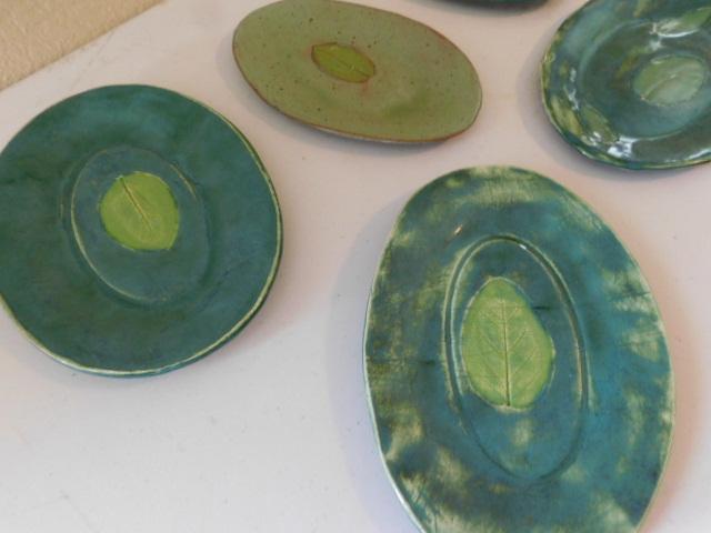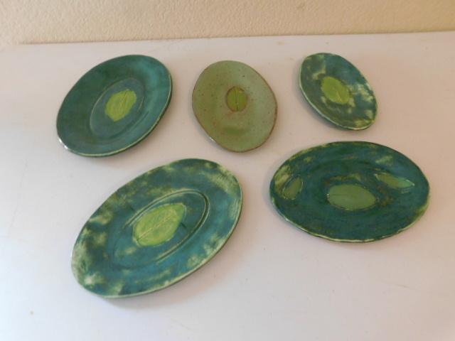 Set of Five Hand Crafted Clay Pottery Plates by Charyl Stone 9" avg.
