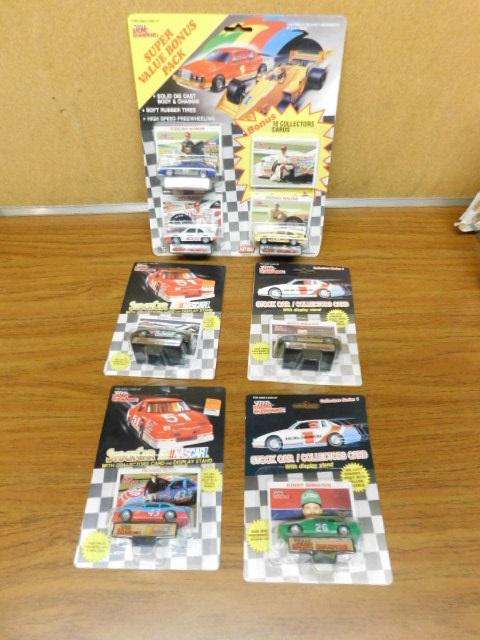 Set of Five including Bonus  Pack Vintage Racing Champions NASCAR Die Cast Stock Cars with Driver's Trading Card