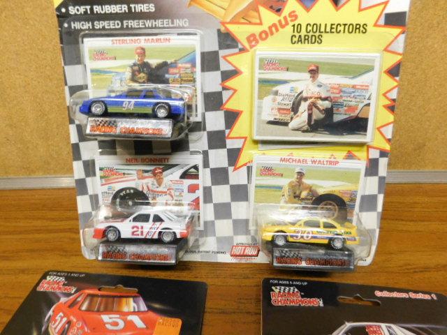Set of Five including Bonus Pack Vintage Racing Champions NASCAR Die Cast Stock Cars with Driver's Trading Card