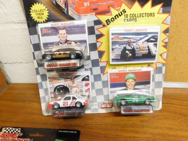 Set of Five including Bonus  Pack Vintage Racing Champions NASCAR Die Cast Stock Cars with Driver's Trading Card