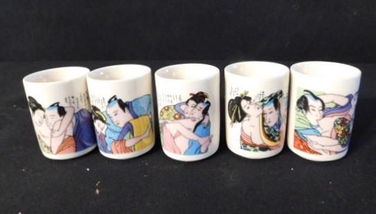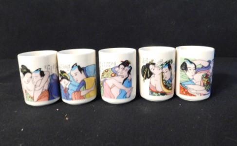 Set of Five Kama Sutra Sake or Tea Drinking Cups