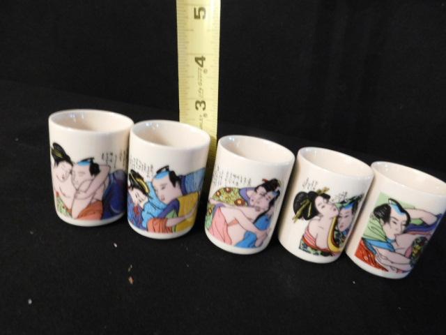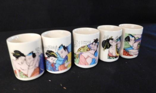 Set of Five Kama Sutra Saki Drinking Cups some have marks on inside from use
