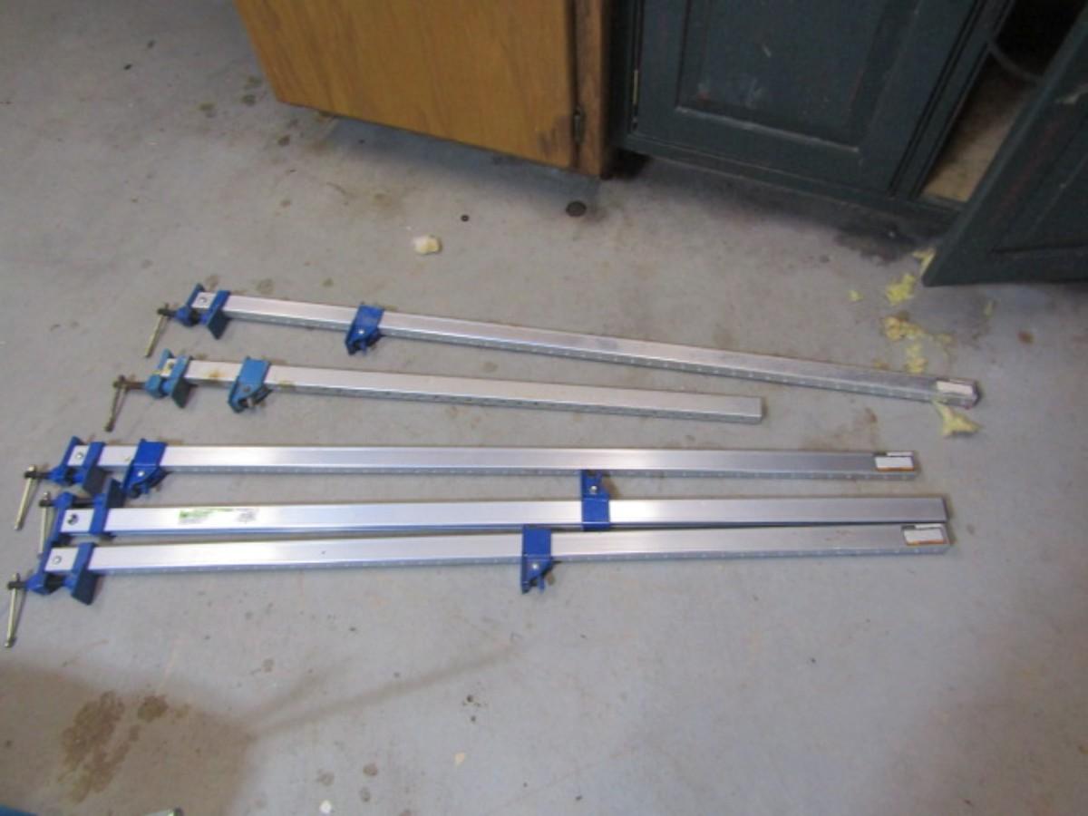 Set of Five Pittsburg Aluminum Bar Wood Clamps Various Lengths