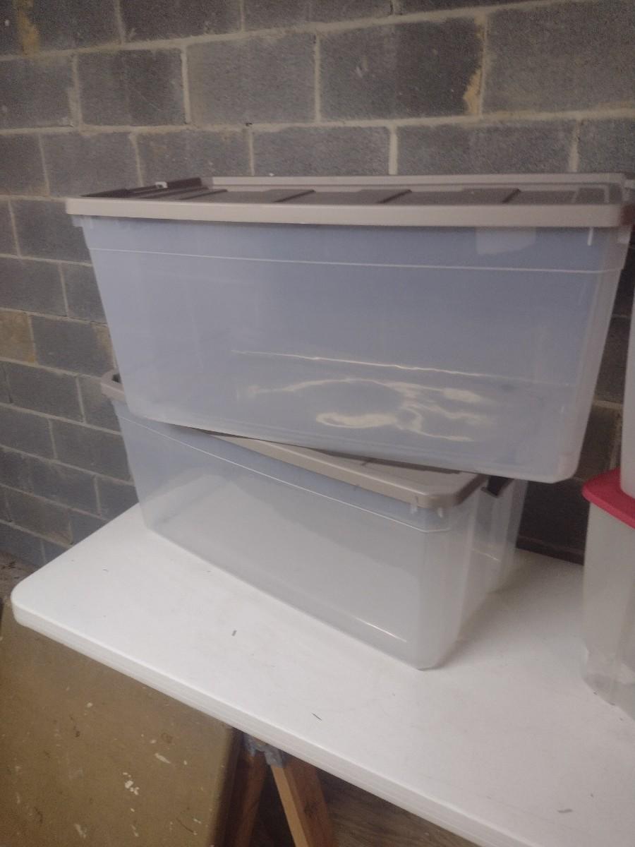 Set of Five Plastic Storage Bins with Lids