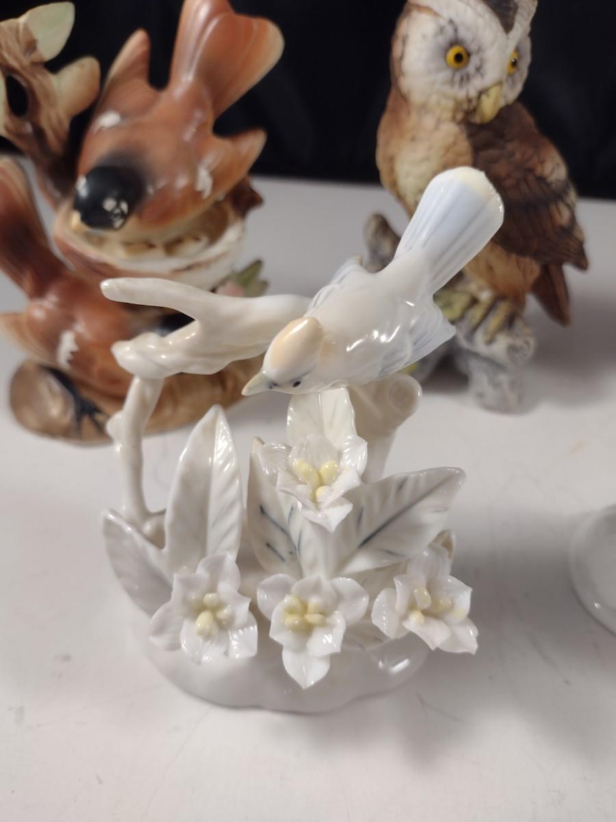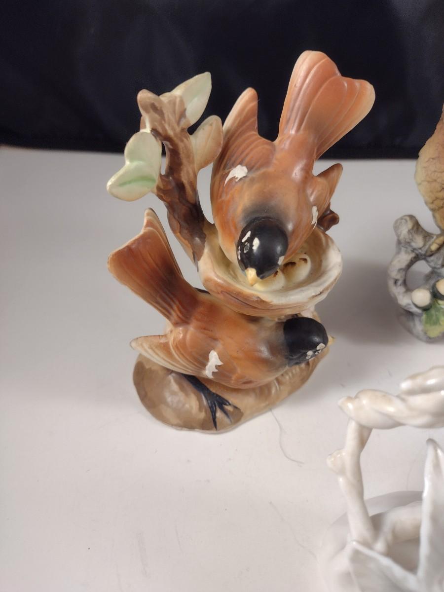 Set of Five Porcelain and Ceramic Small Bird Statuettes includes a Lefton.