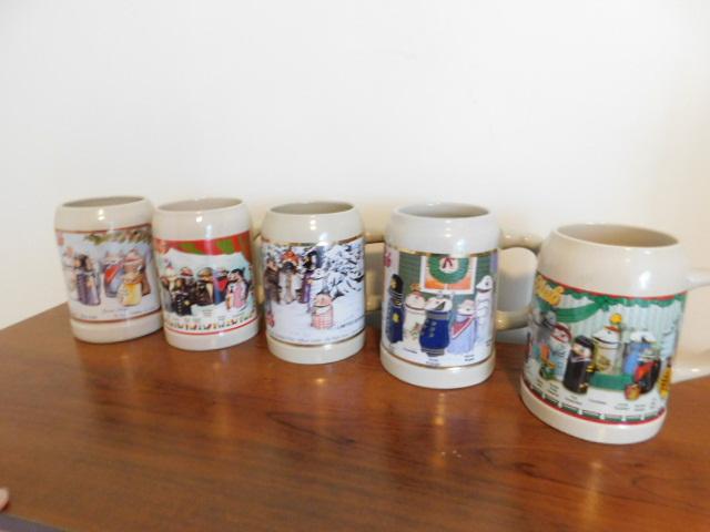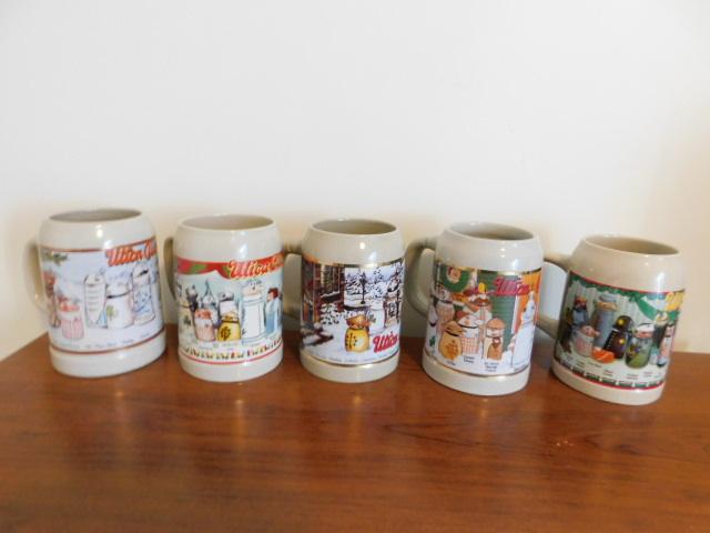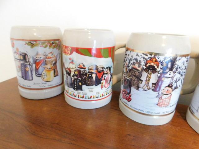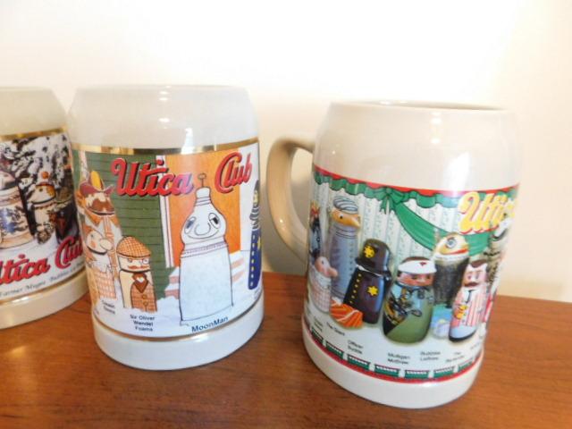 Set of Five Utica Club Brewery Beer Character Ceramic Display Mugs Mostly German Made Set Two