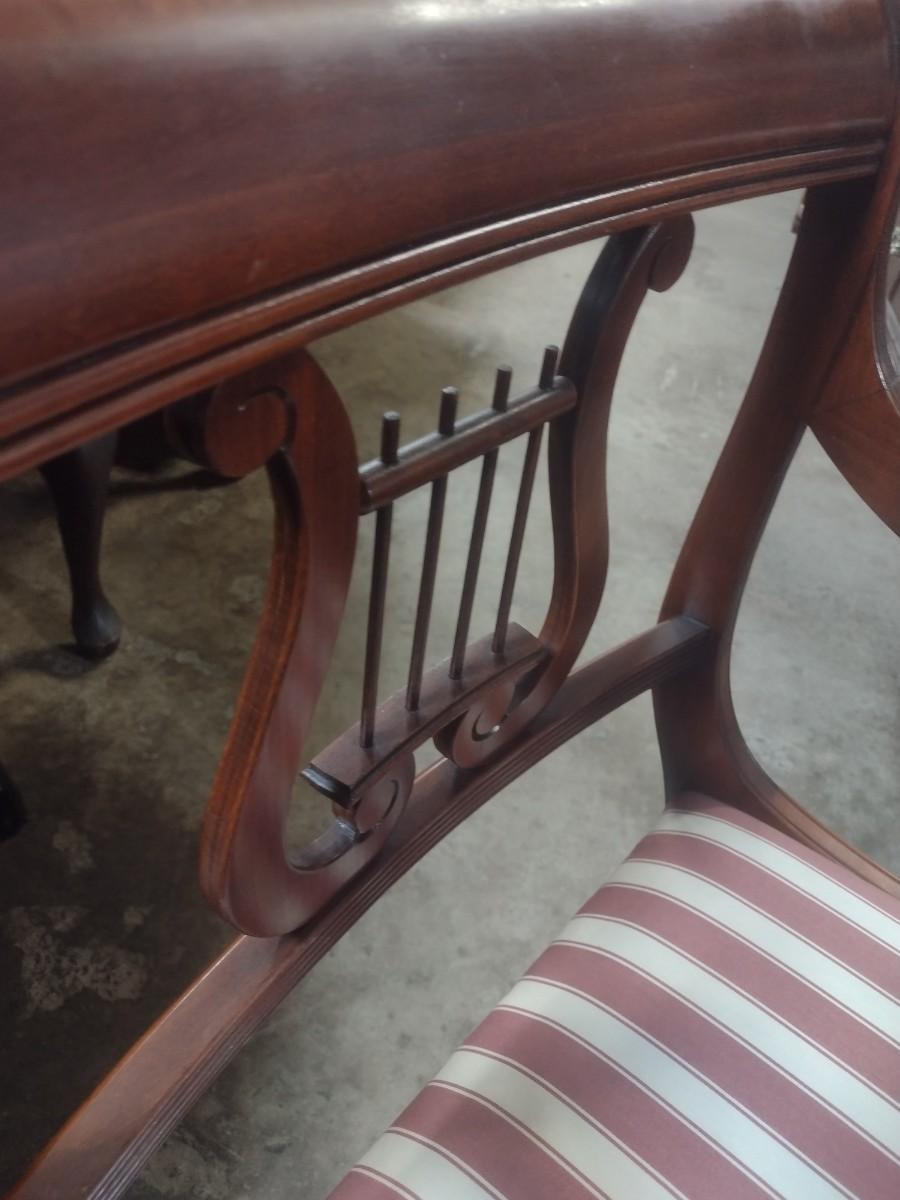Set of Five Vintage Drexel Harp Back Mahogany Dining Chairs