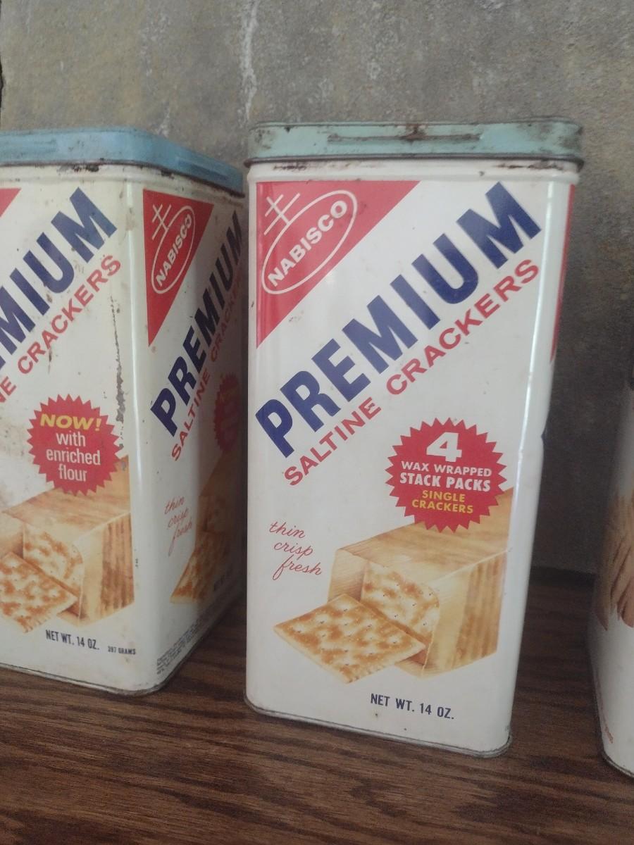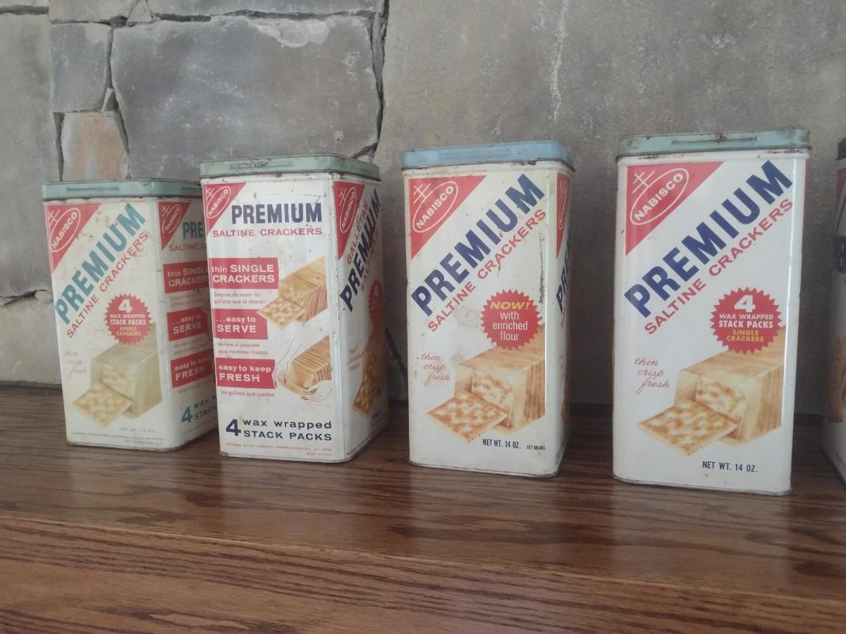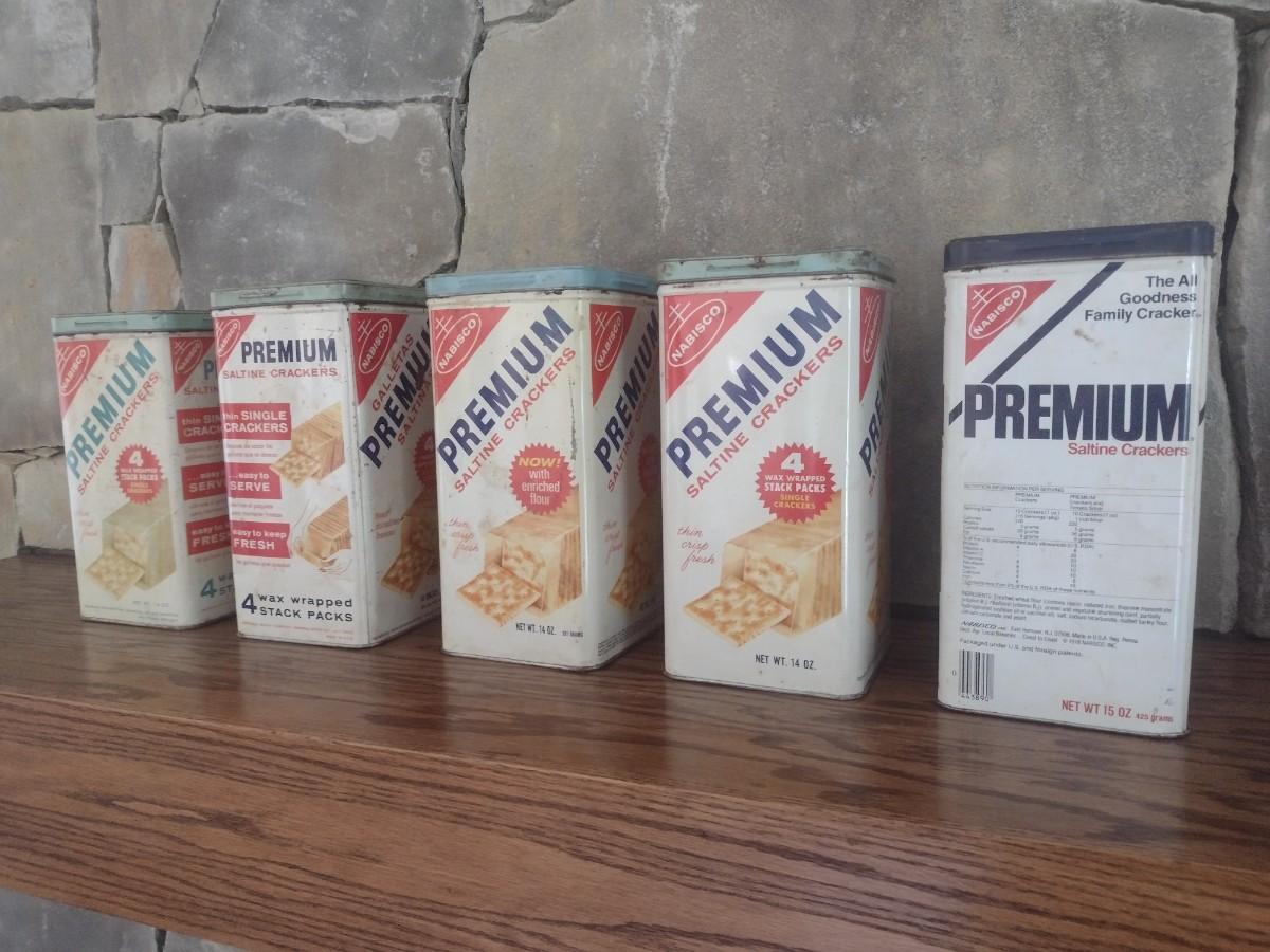 Set of Five Vintage Premium Cracker Tins