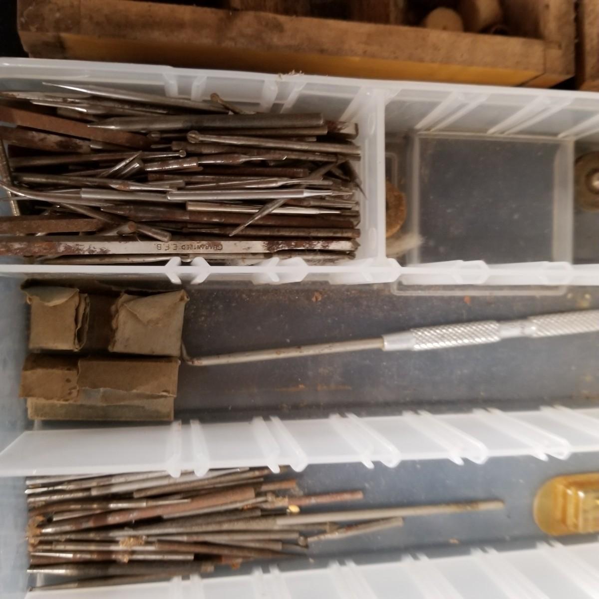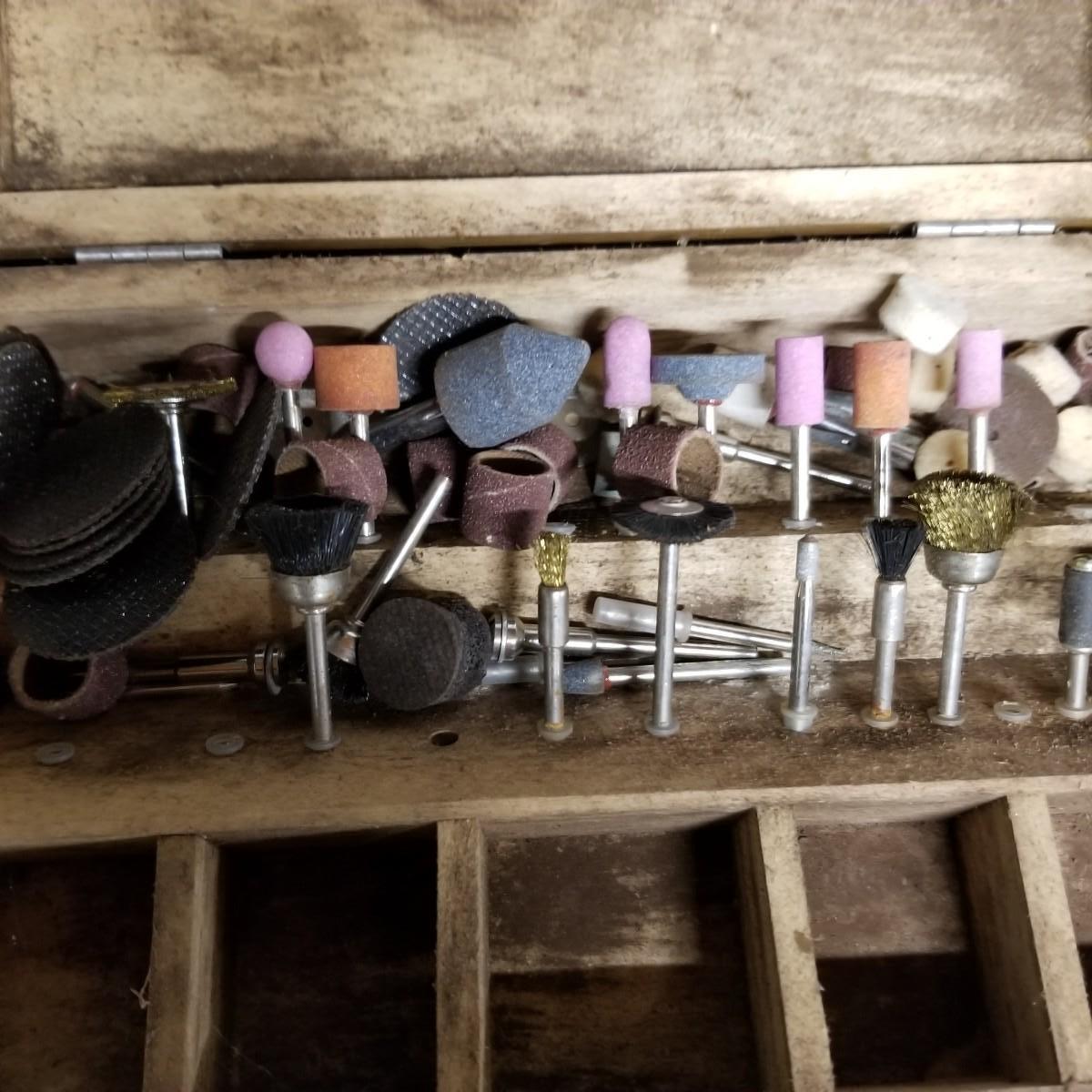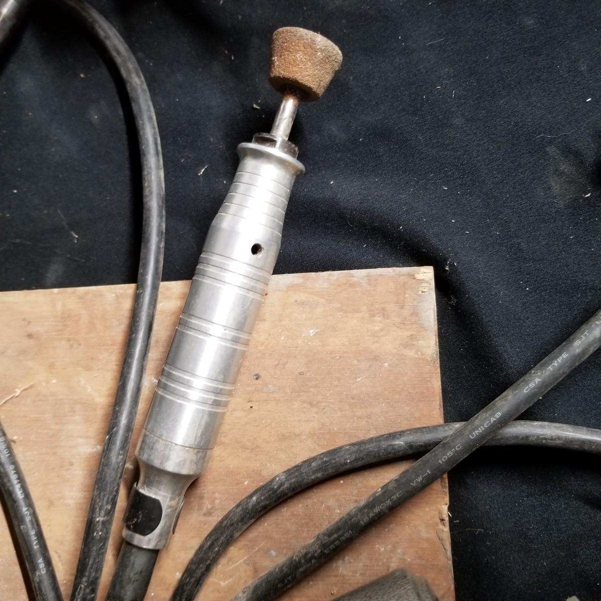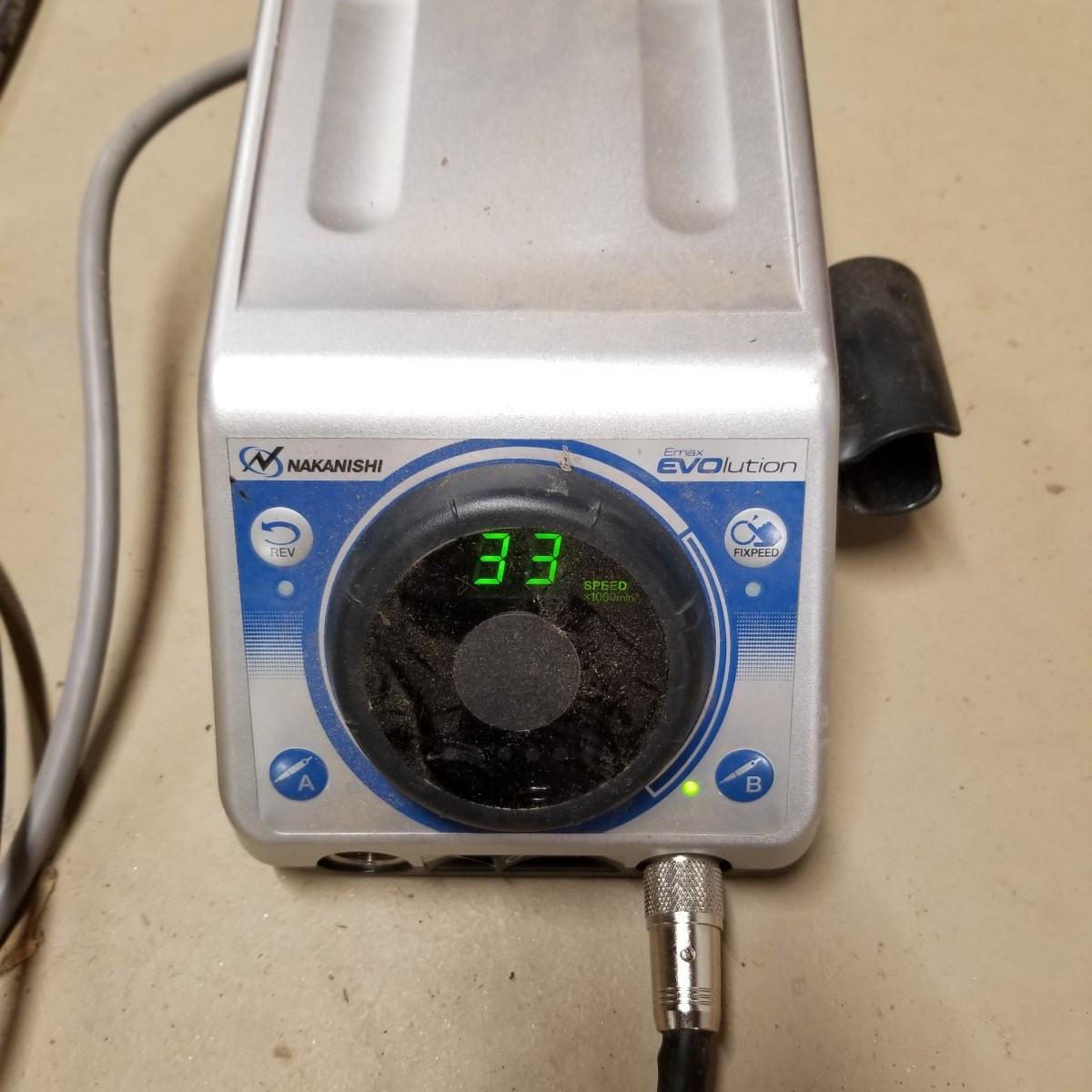 Three flex shaft tools and accessories. One Foredom with foot pedal and standard hand-piece, one Pfingst with foot pedal and 432 hand-piece, and one Nakanishi electronic control Evolution unit with adjustable speed dial.  Unit can take two hand-pieces, only one is available with this lot.  Also two boxes assorted drills, stones, sanders and wheels.  All items tested working.  Local pickup only.