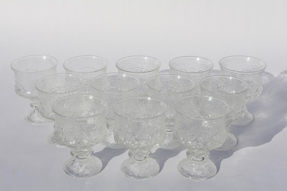 Set of 12 footed dessert glasses, (Princess House, 1970s). Excellent condition; no chips or cracks.