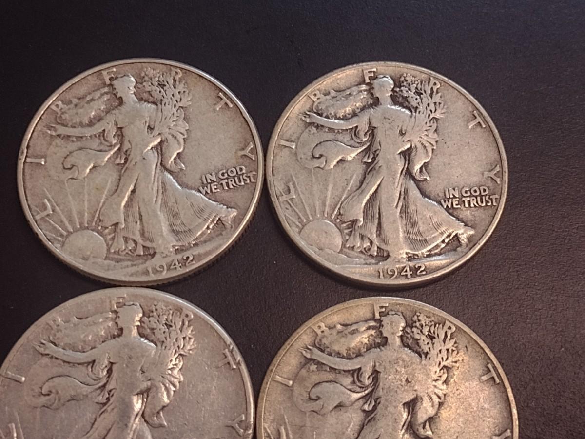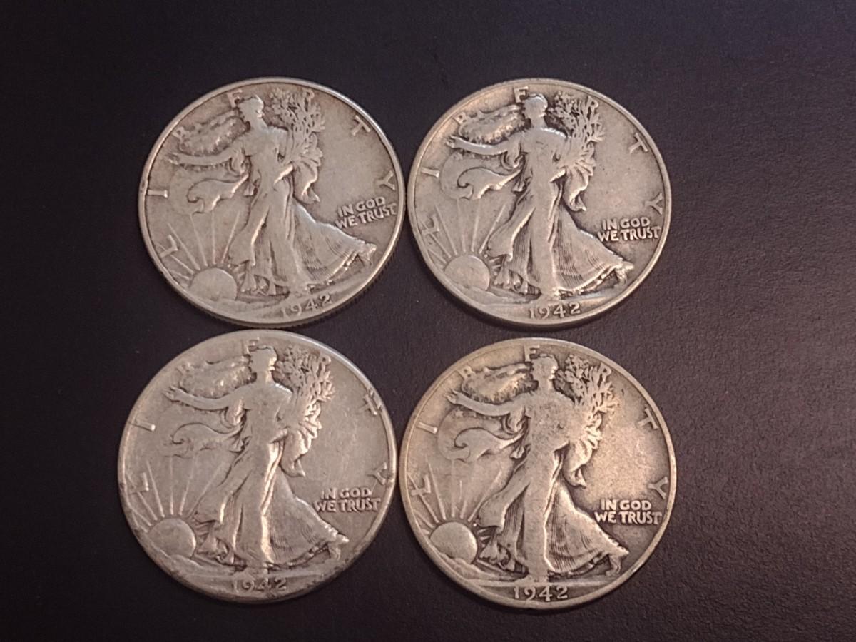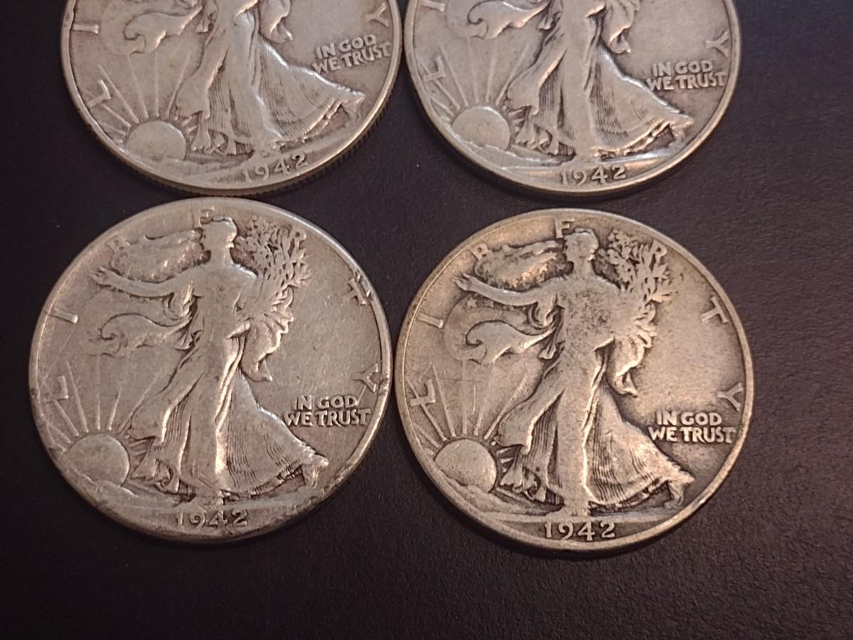 Set of Four 1942 U.S. Mint Walking Liberty Silver Half Dollars Circulated (4)