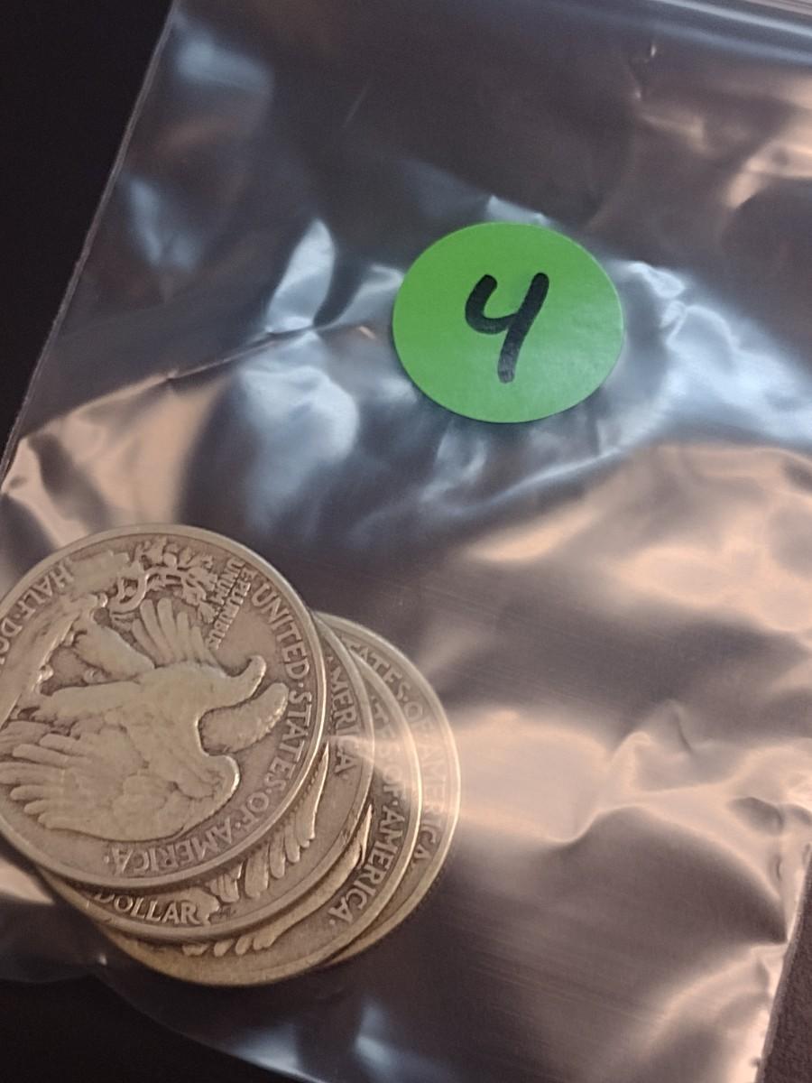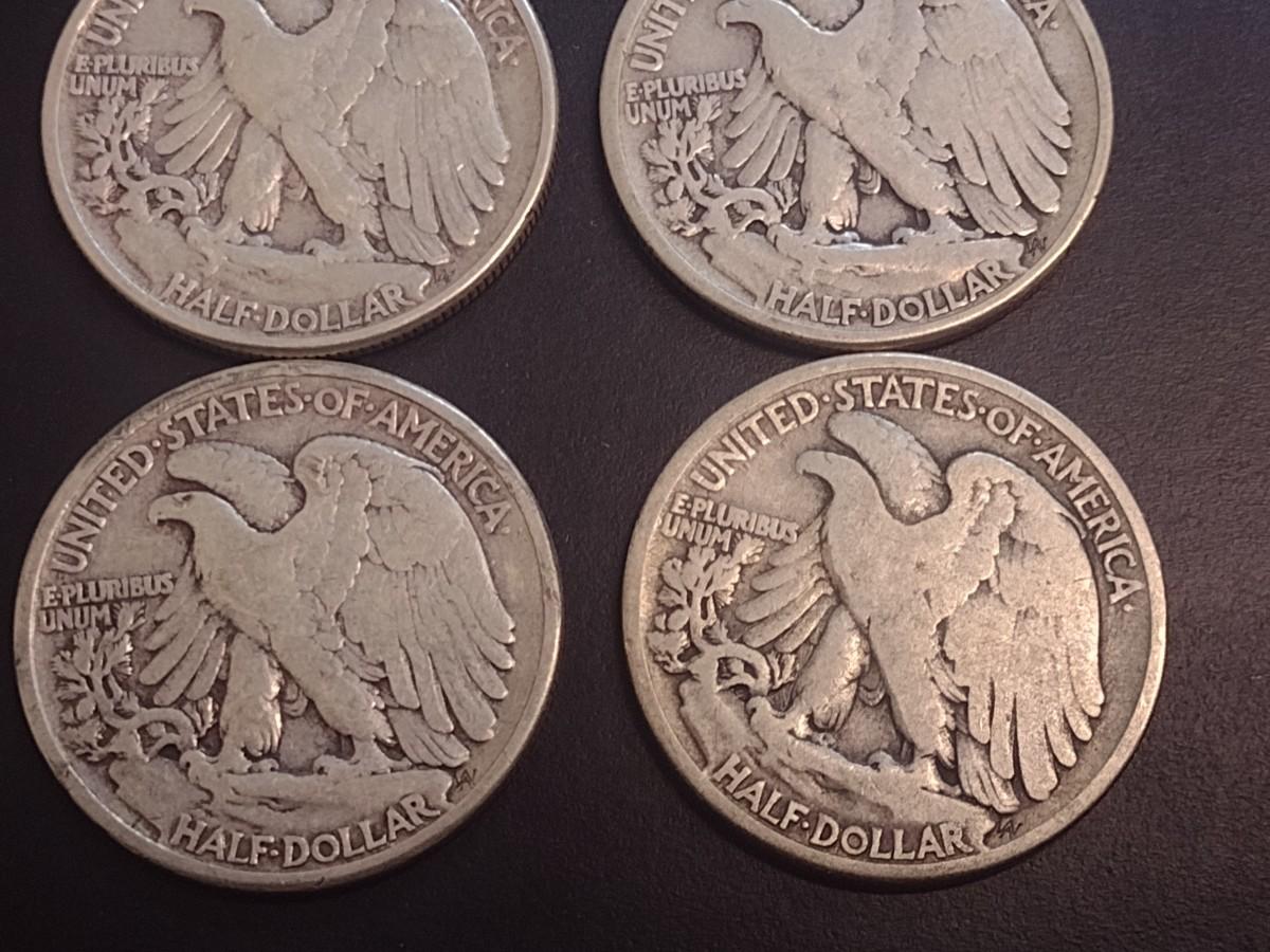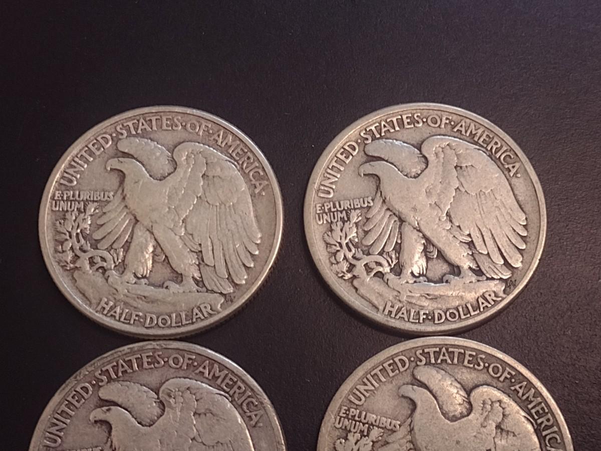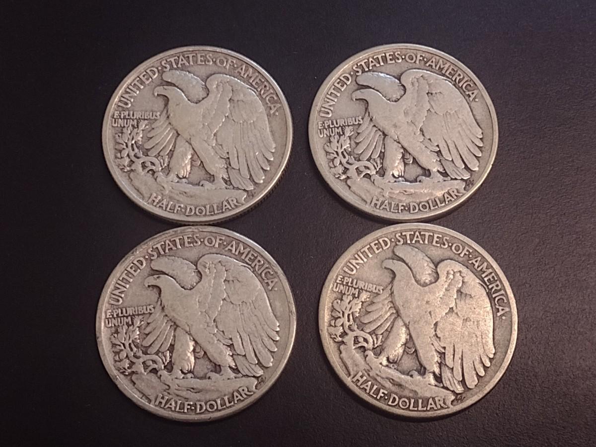 Set of Four 1942 U.S. Mint Walking Liberty Silver Half Dollars Circulated (4)