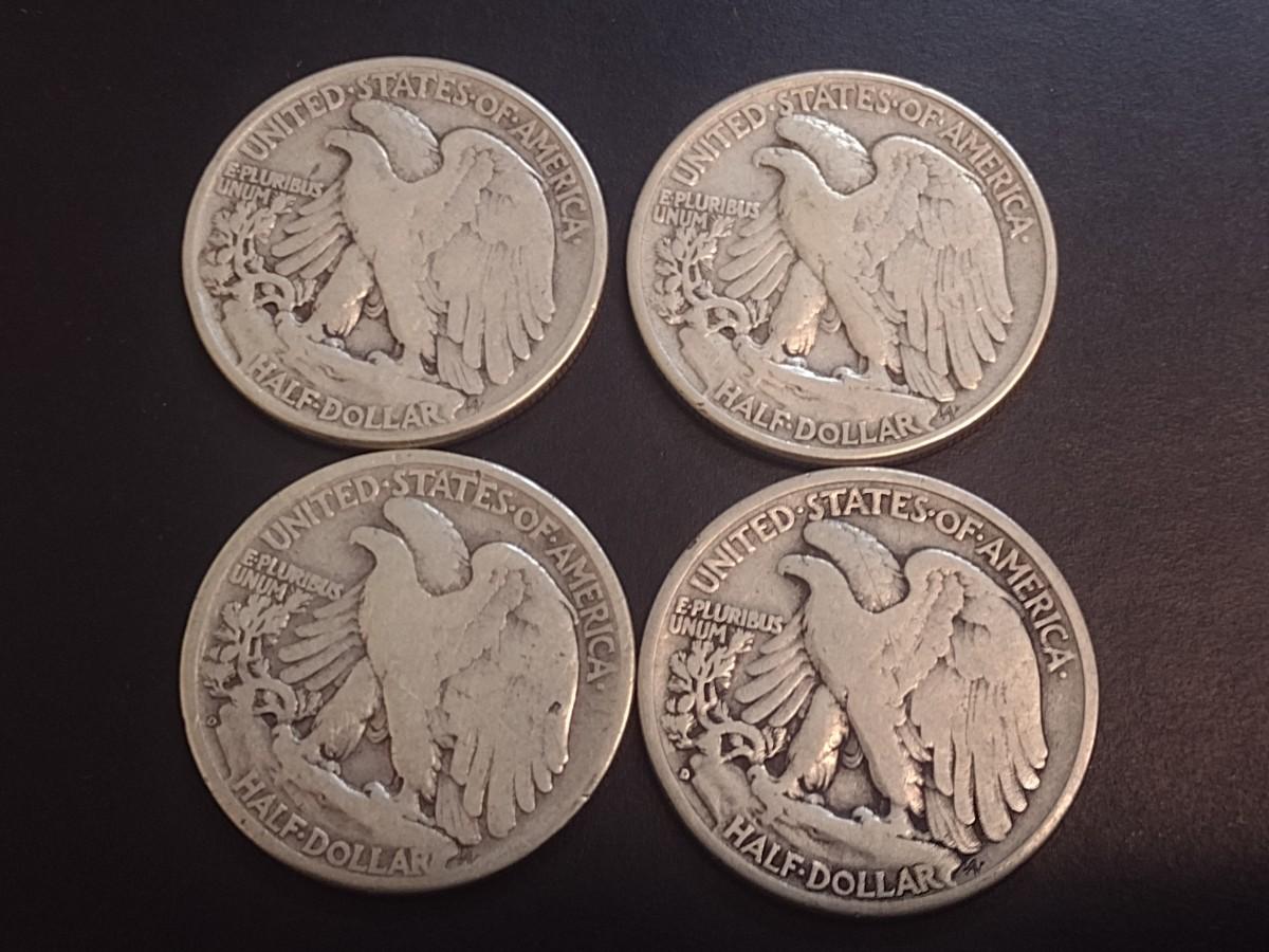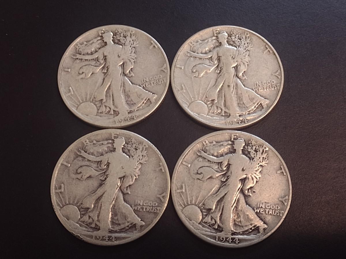 Set of Four 1944 U.S. Mint Walking Liberty Silver Half Dollars Circulated (12)