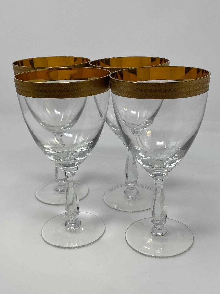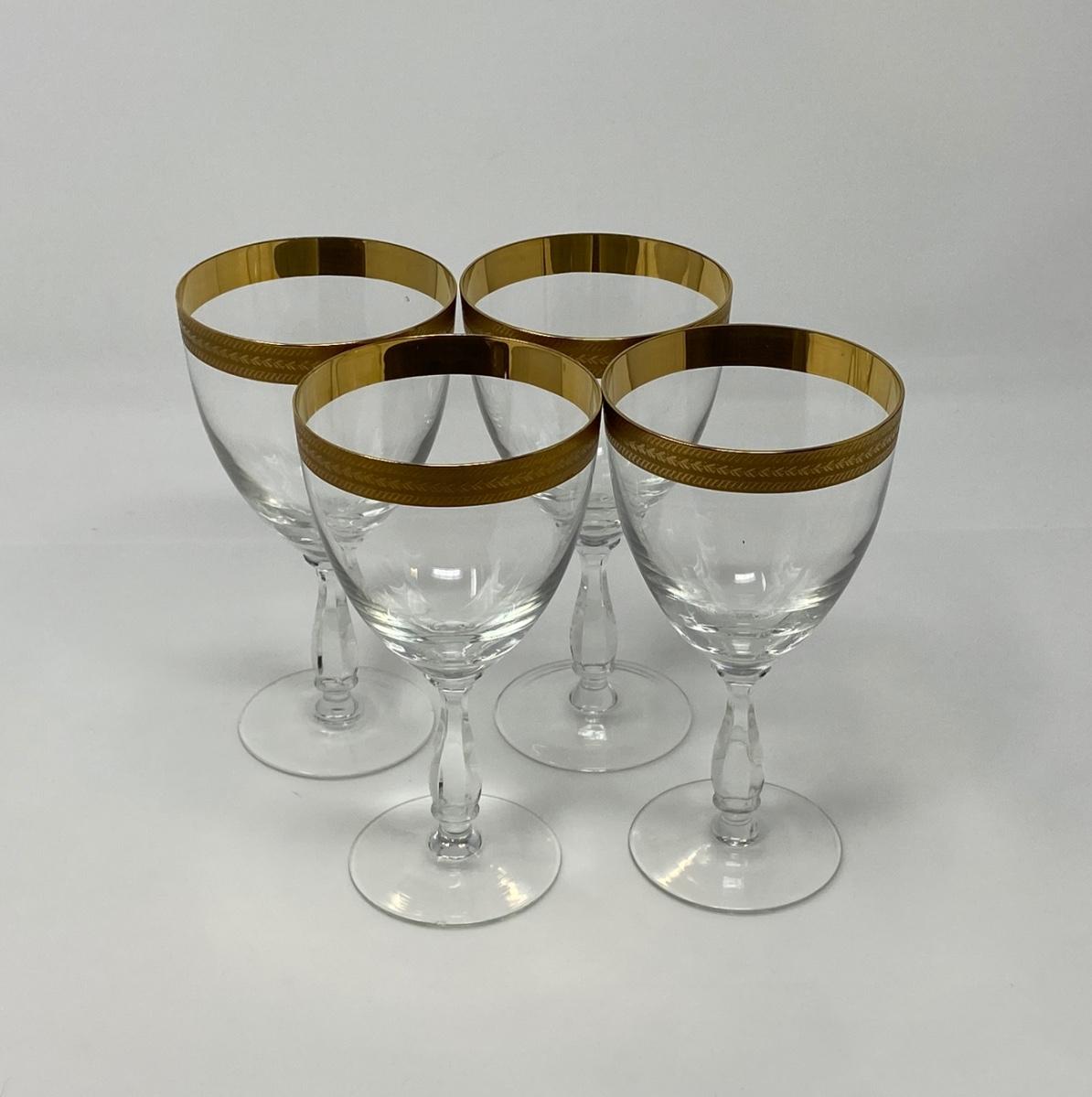 Set of Four 24K Gold Rimmed Crystal Water Goblets