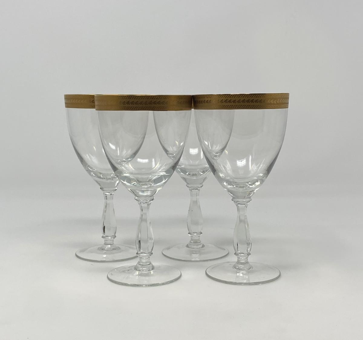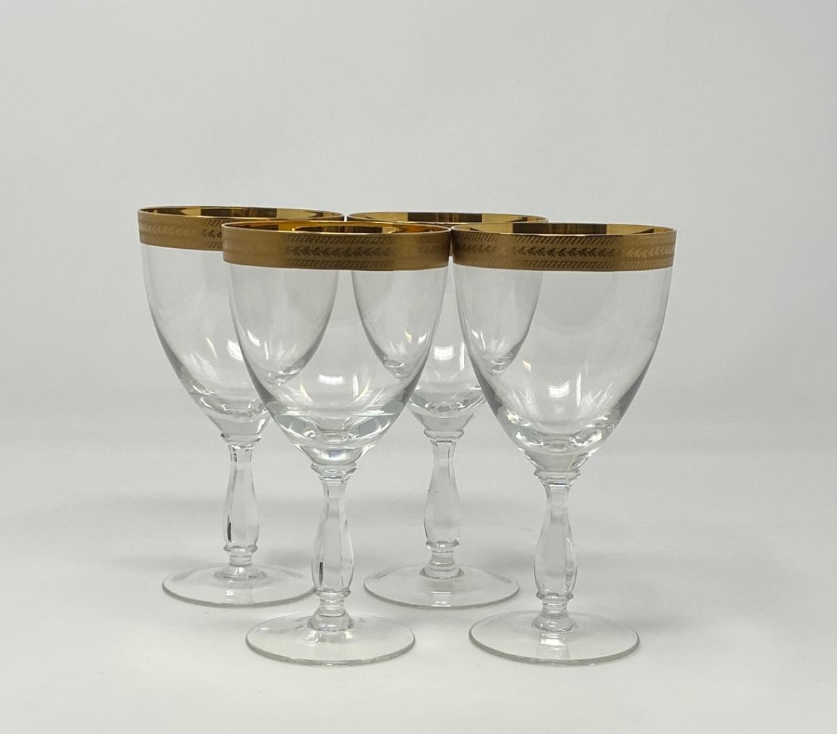 Set of Four 24K Gold Rimmed Crystal Water Goblets