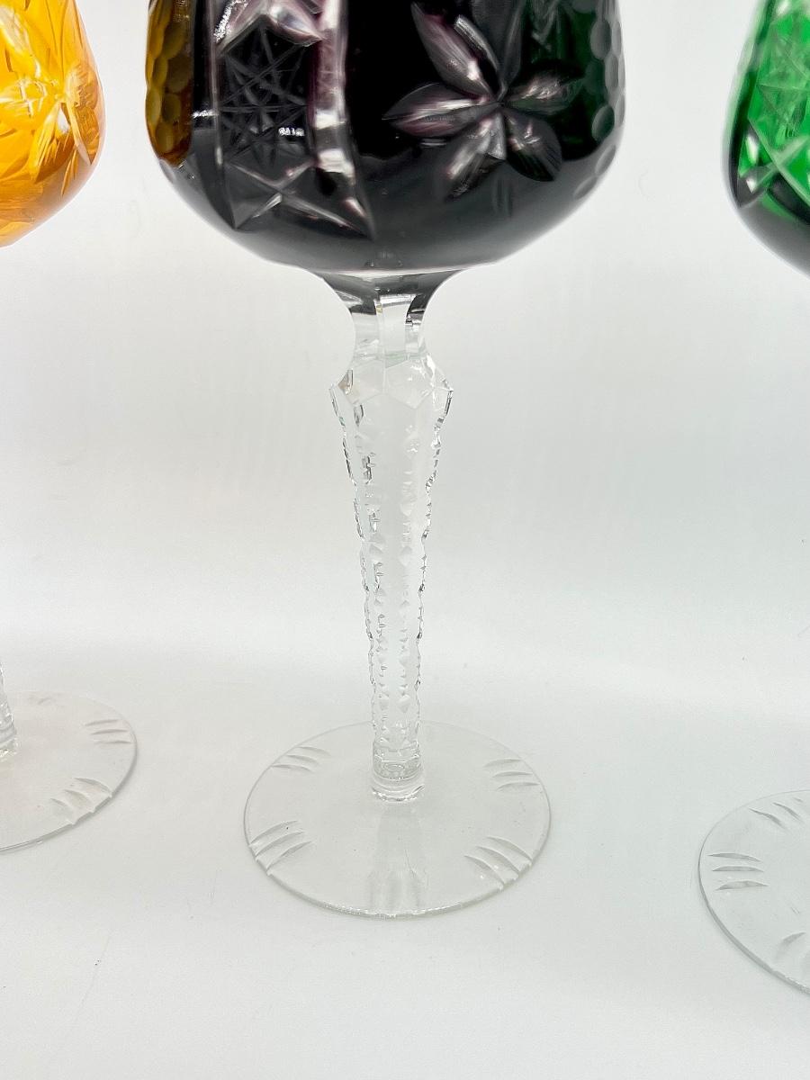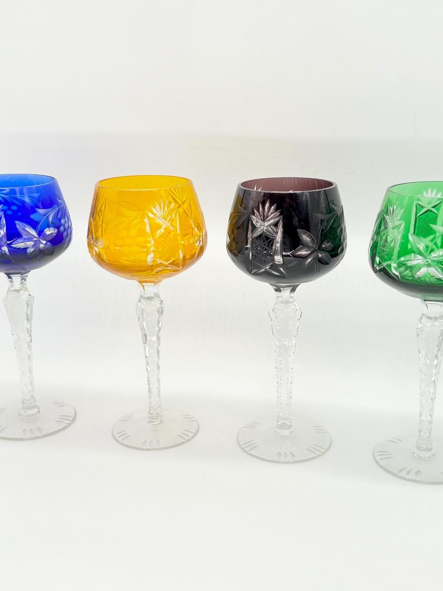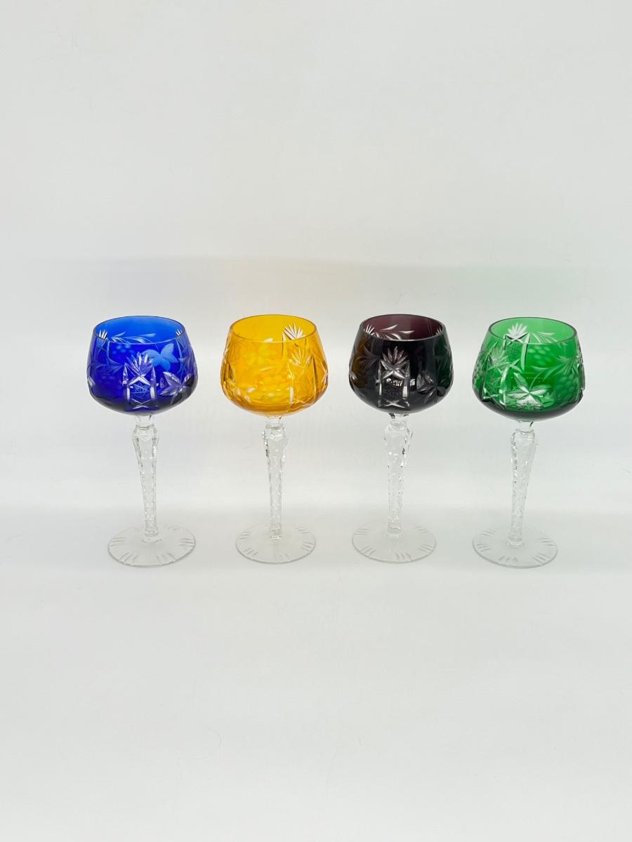 Set Of Four (4) Bohemian Style Cut to Clear Wine Glasses