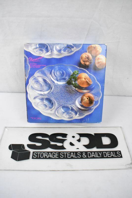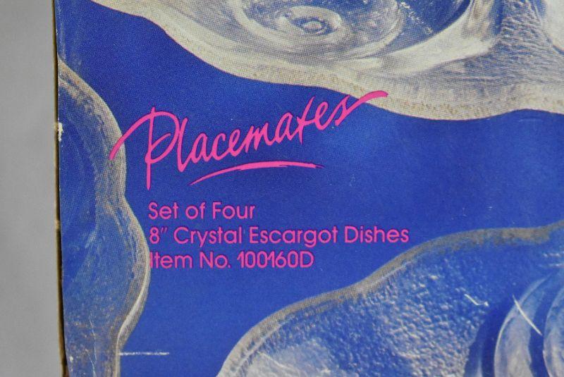 Set of Four 8" Crystal Escargot Dishes. Placemats, by Toscany, with Box