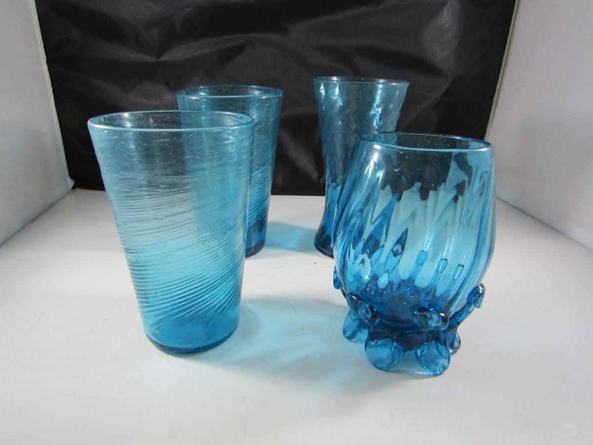 Set of Four Art Glass Drinking Glasses- 3 Different Designs