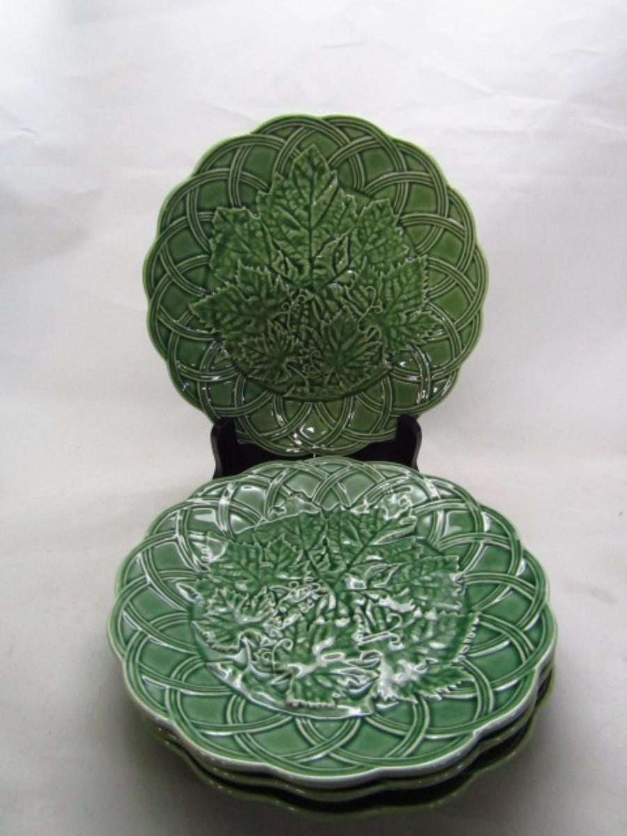 Set of Four Bordallo Pinheiro Plates (8 1/4")- Leaves and Lattice- Made in Portugal