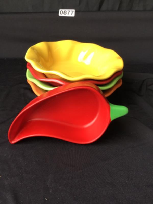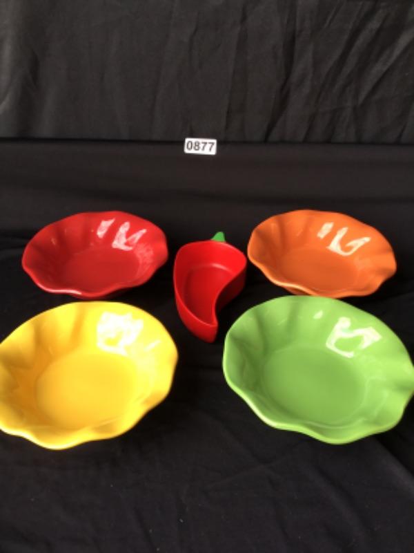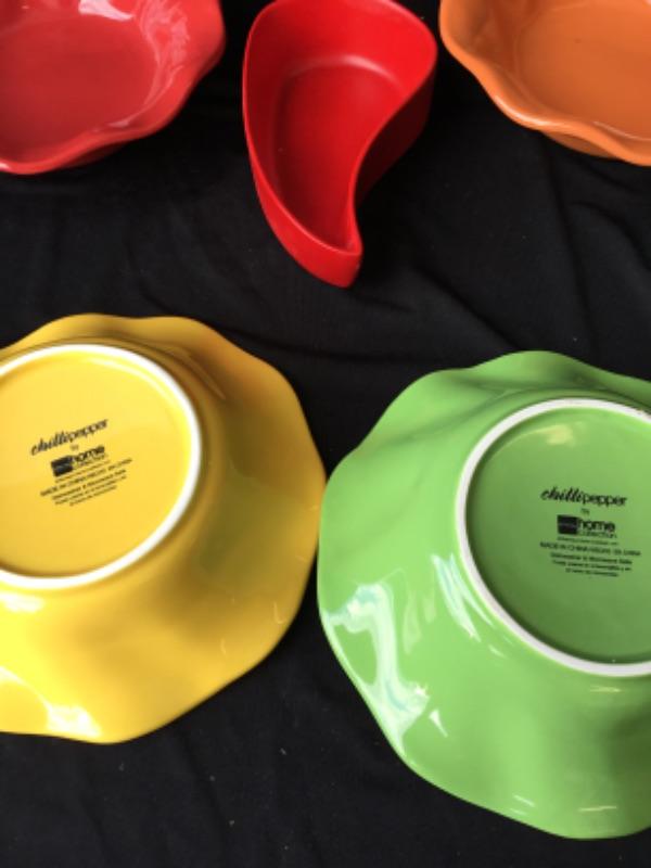 Set of four chili peppers by JCPenney home collection ceramic bowls and chili pepper salsa dish lot 877