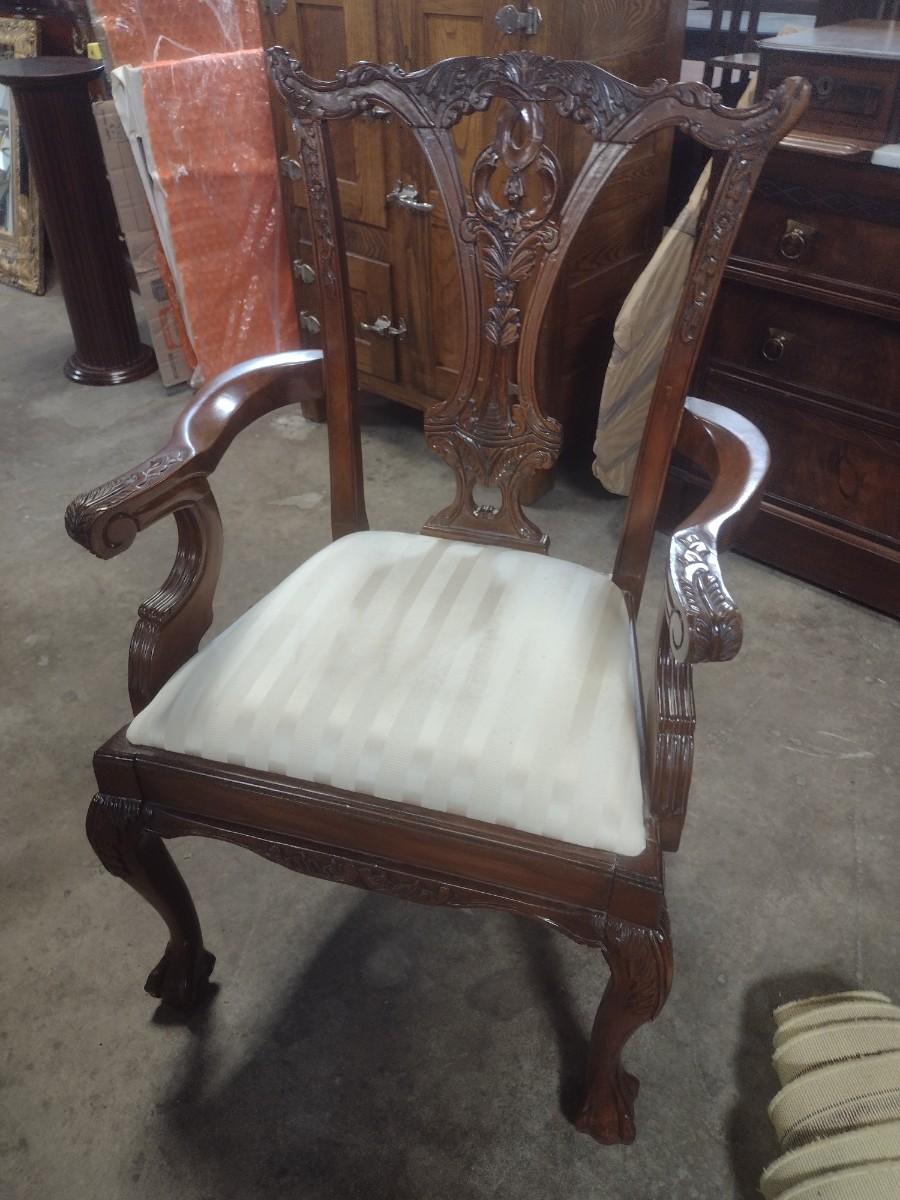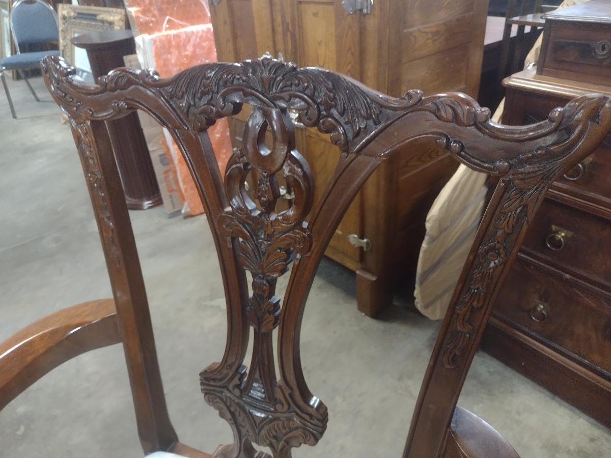 Set of Four Chippendale Wood Frame Upholstered Seat Formal Dining Chairs