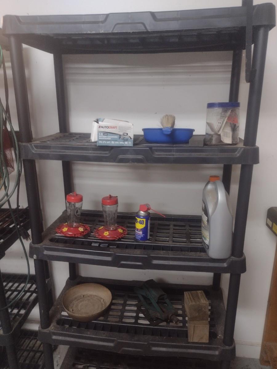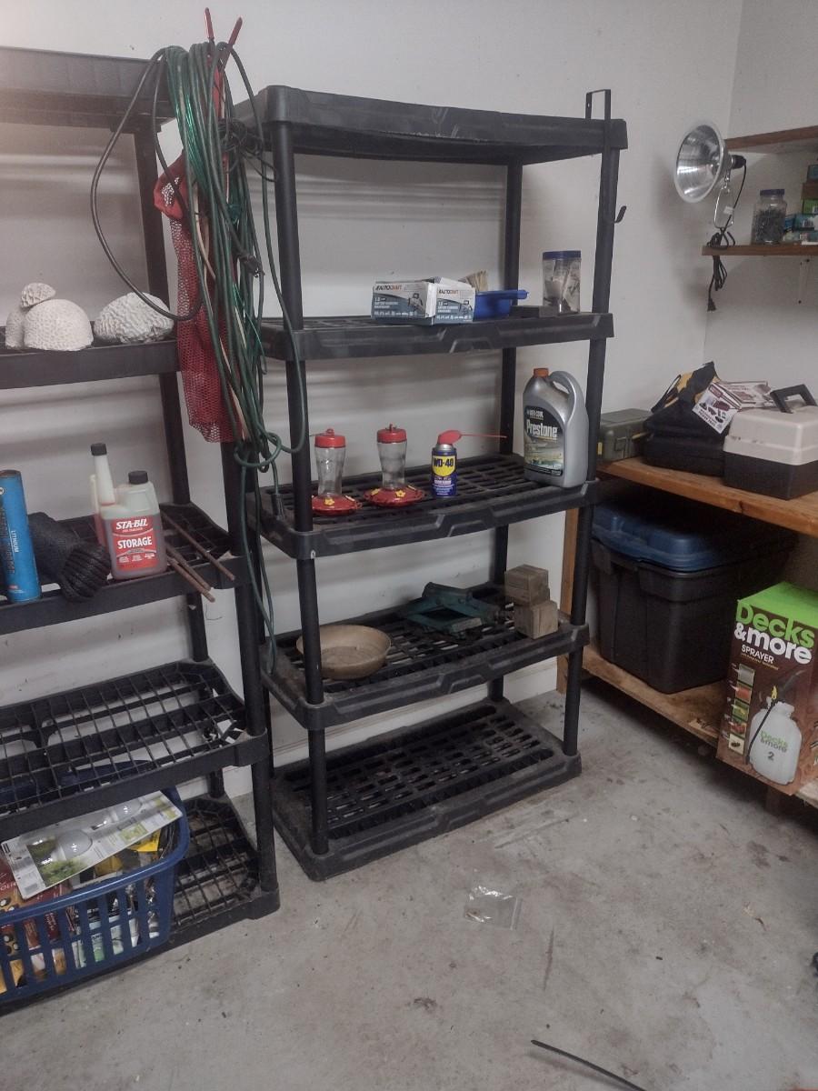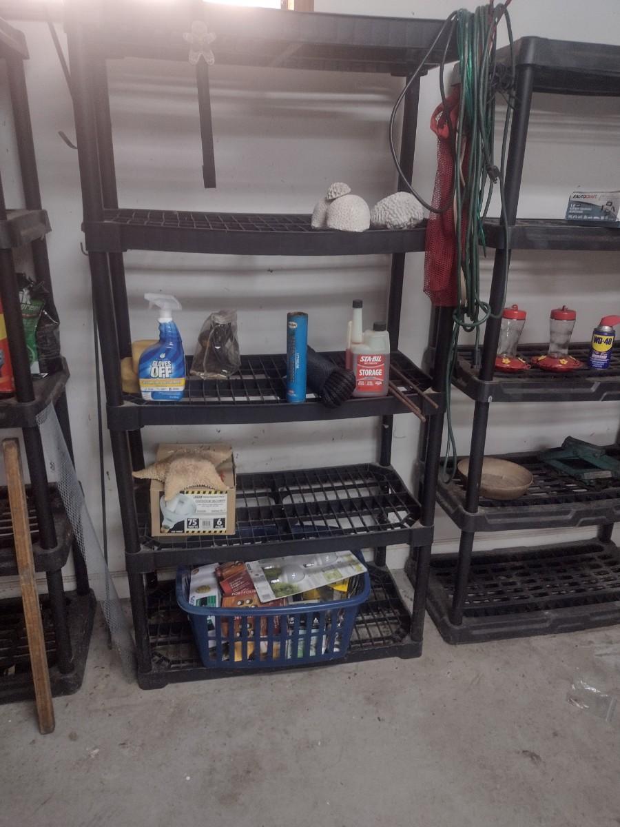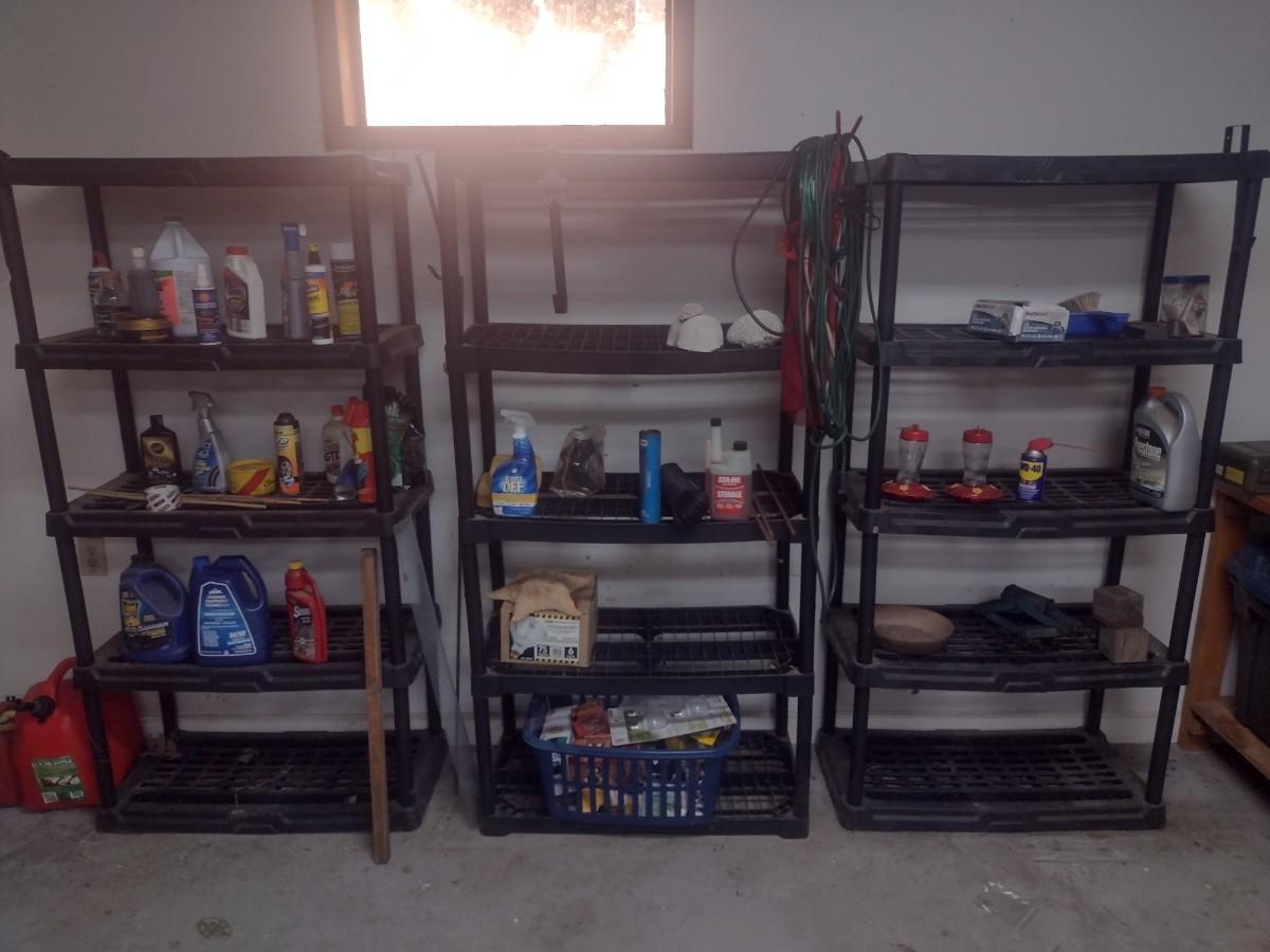 Set of Four Composite Multi-Tier Storage Shelves (Includes Contents)