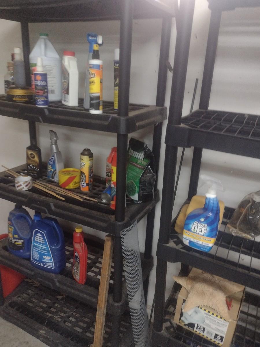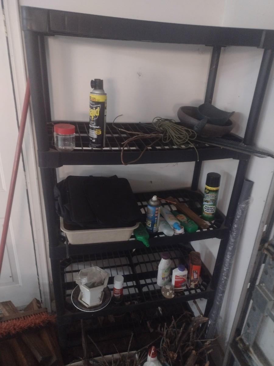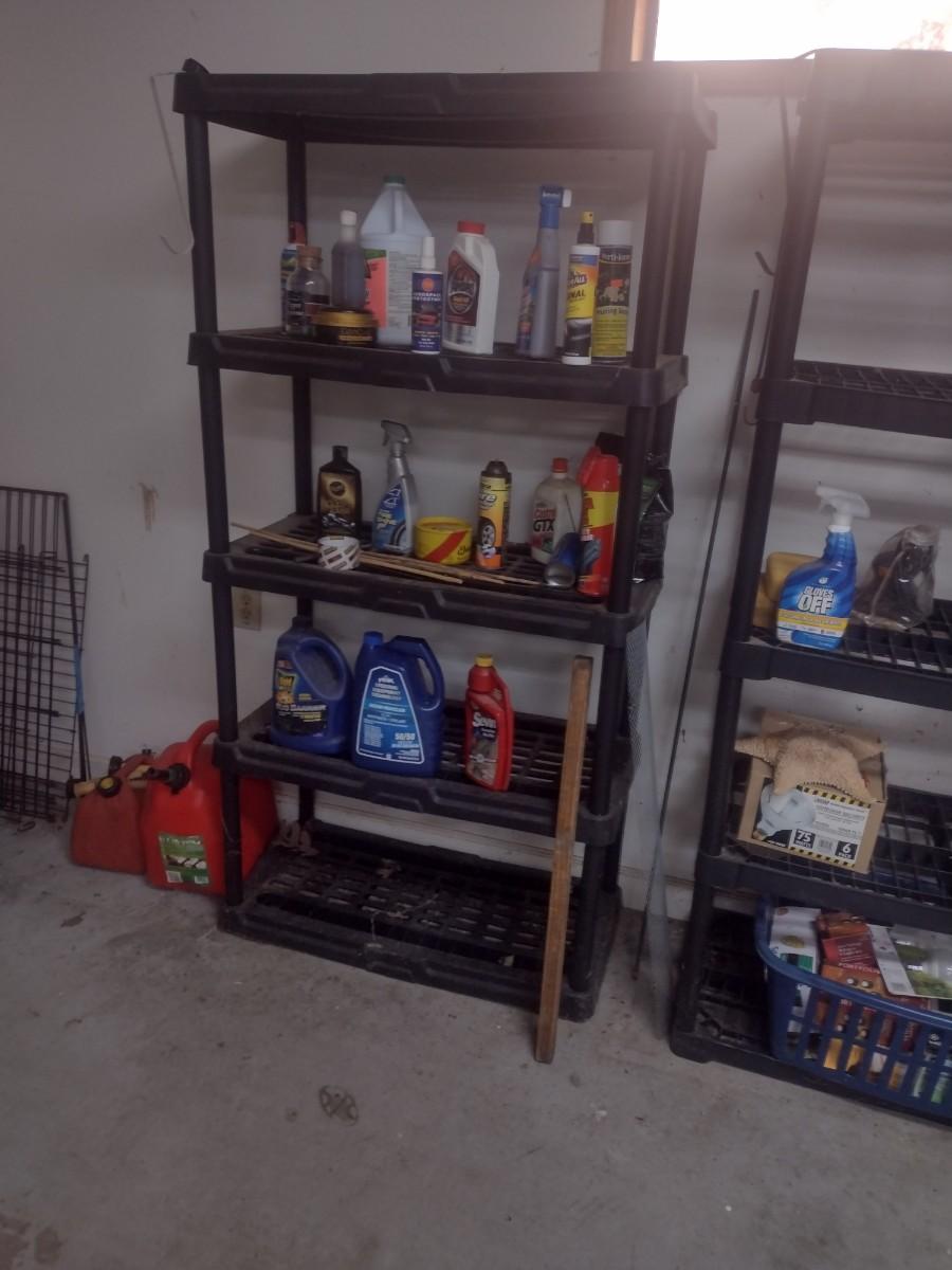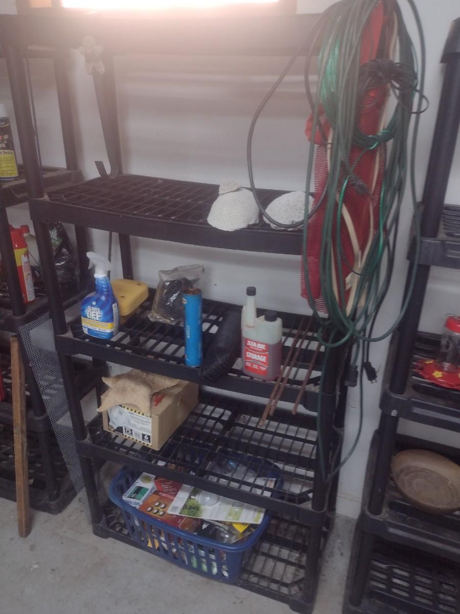 Set of Four Composite Multi-Tier Storage Shelves (Includes Contents)