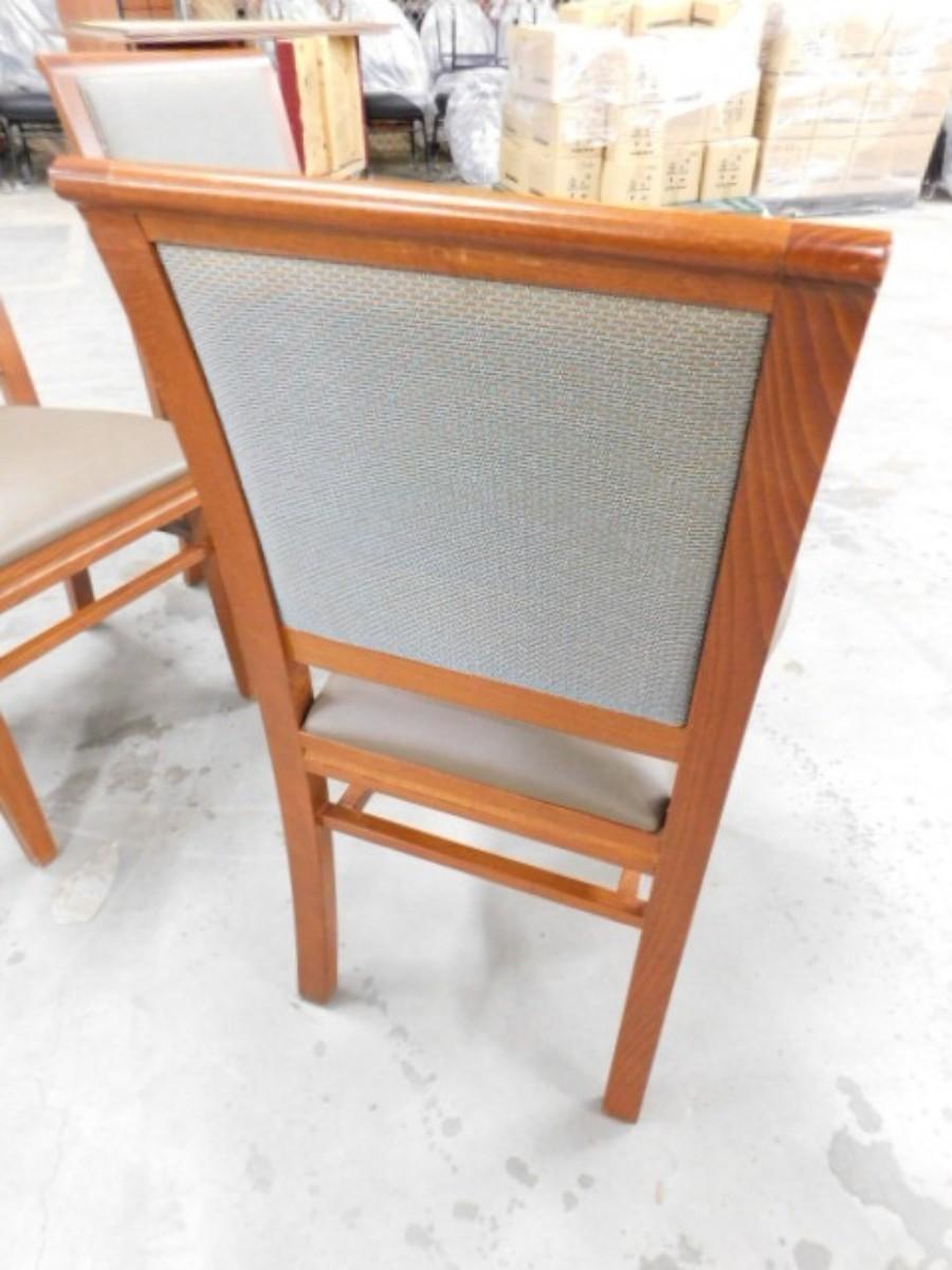 Set of Four Contemporary Faux Leather Seat Fabric Back Wood Frame Chairs by GAR
