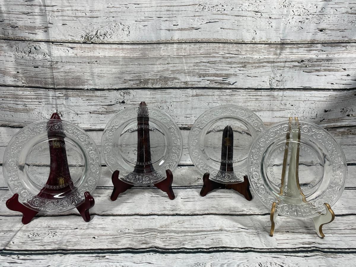 Set of Four Clear Depression Glass Appetizer Dessert Plates