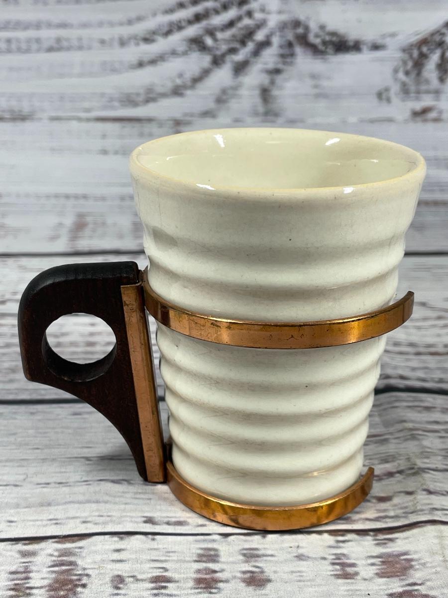 Set of White Ceramic Cup and Metal Copper Cup Holders