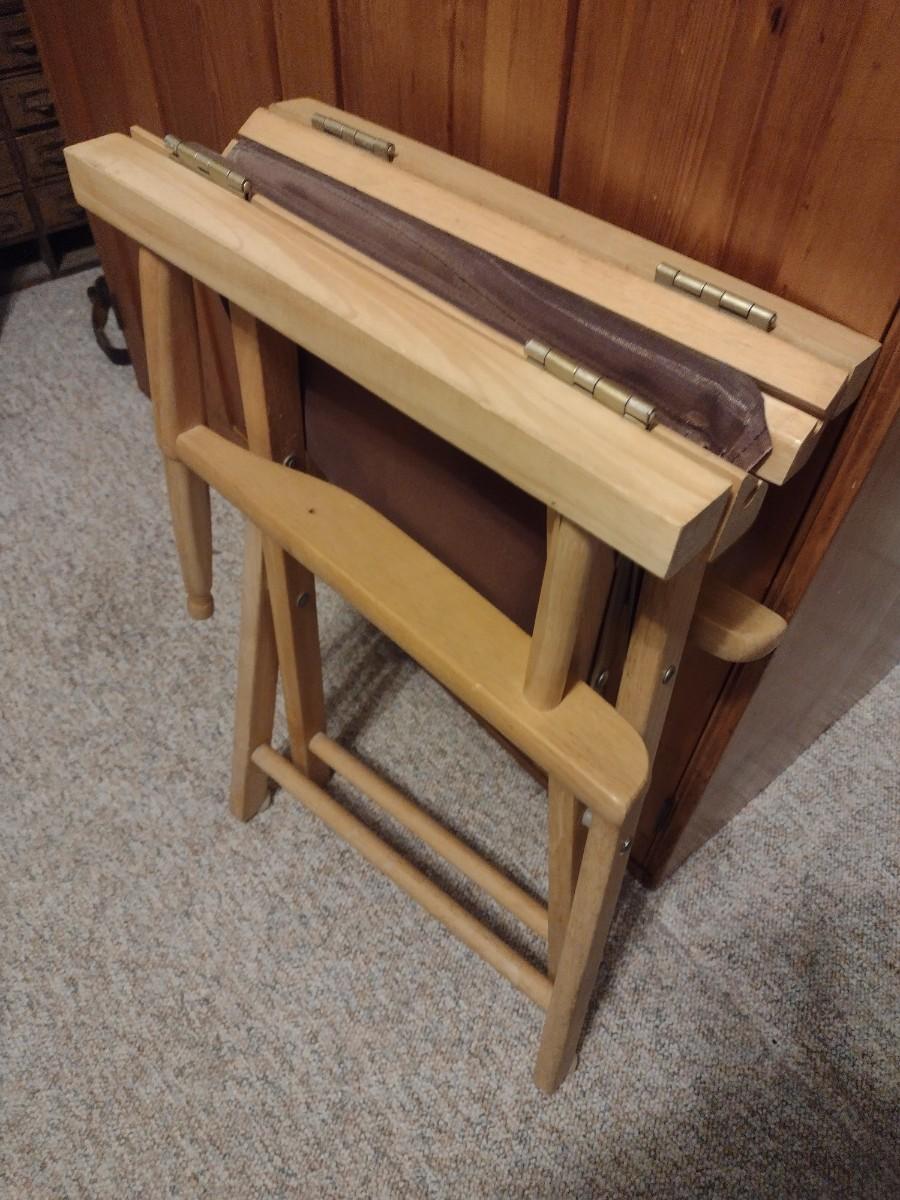Set of Four Folding Director Chairs Various Colors and Styles. Some may have worn wood or fabric. Unsure if all parts are present. Bid accordingly.