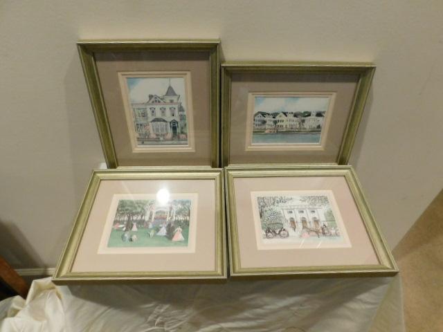 Set of Four Framed Art of Victorian Era Scenes by Bonnie Holden