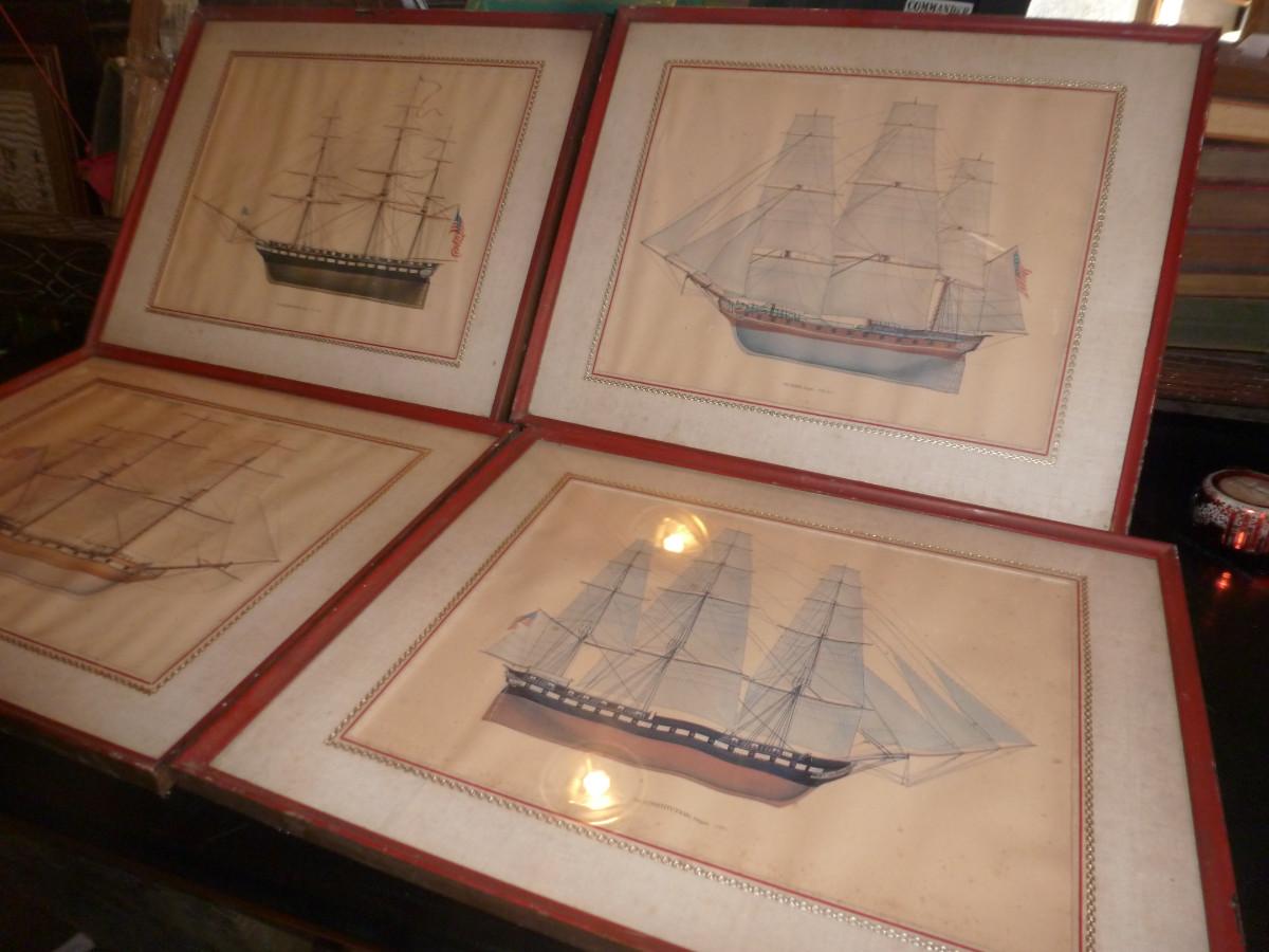 Set of Four Framed Ship Prints- Approx 21" x 17"