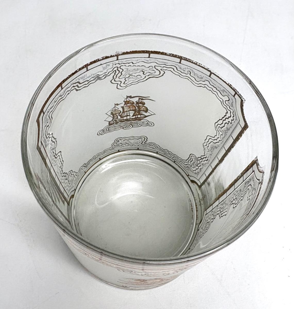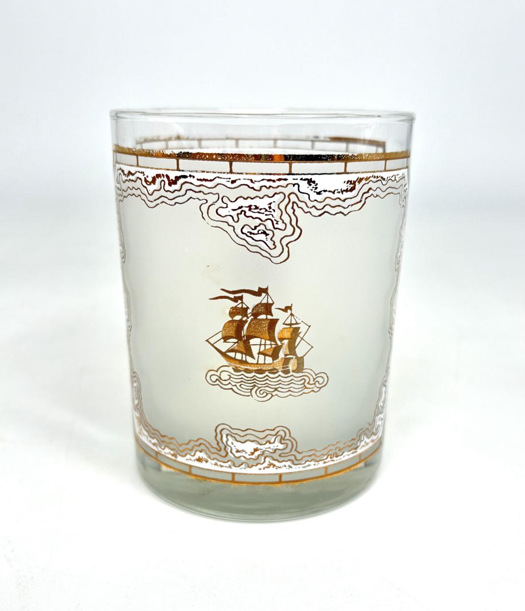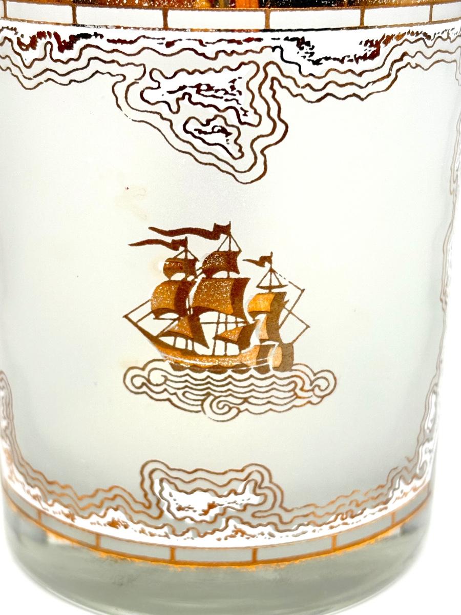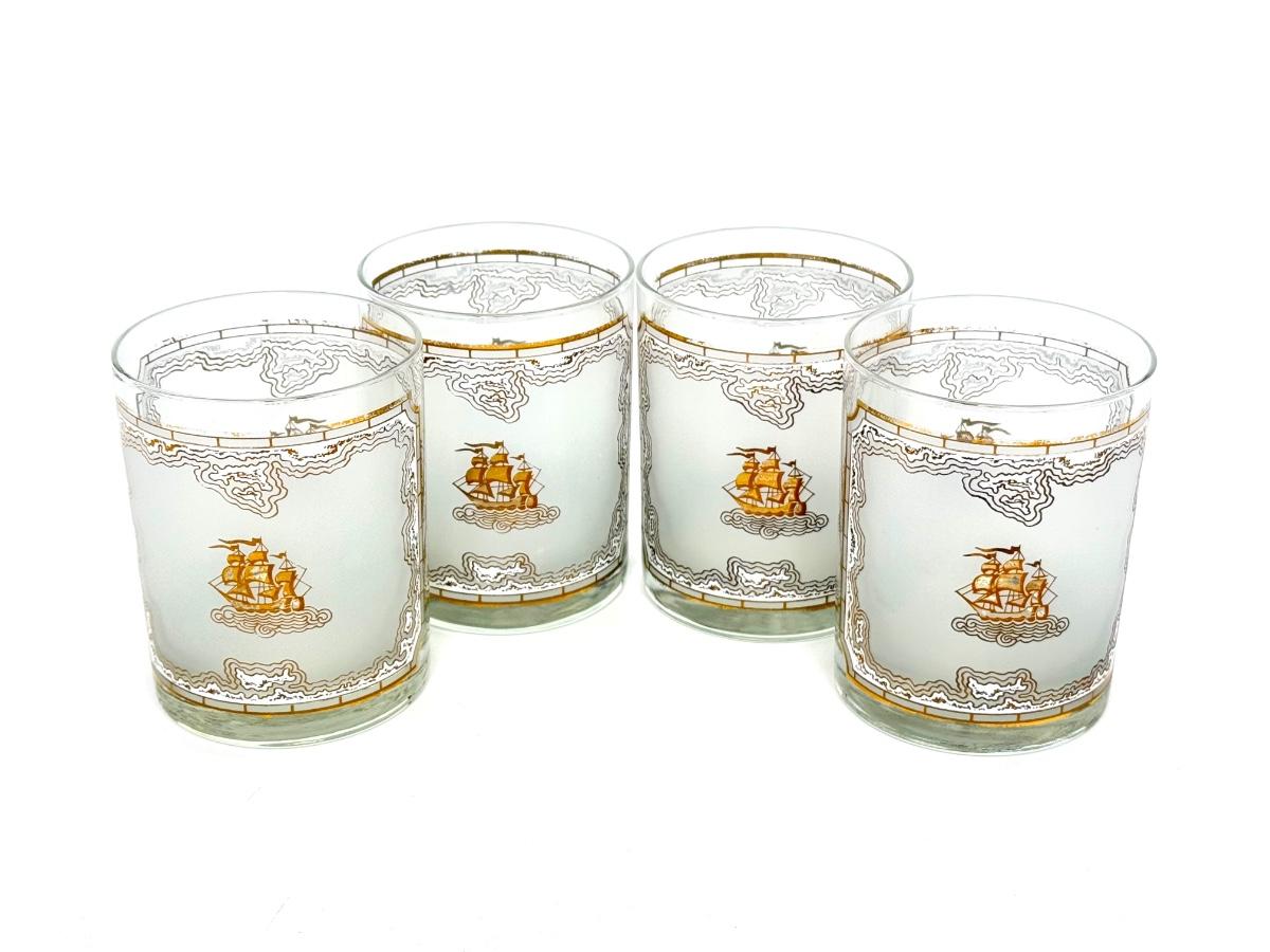 Set of Four MCM Frosted Tumblers with Gold Ships by Georges Briard