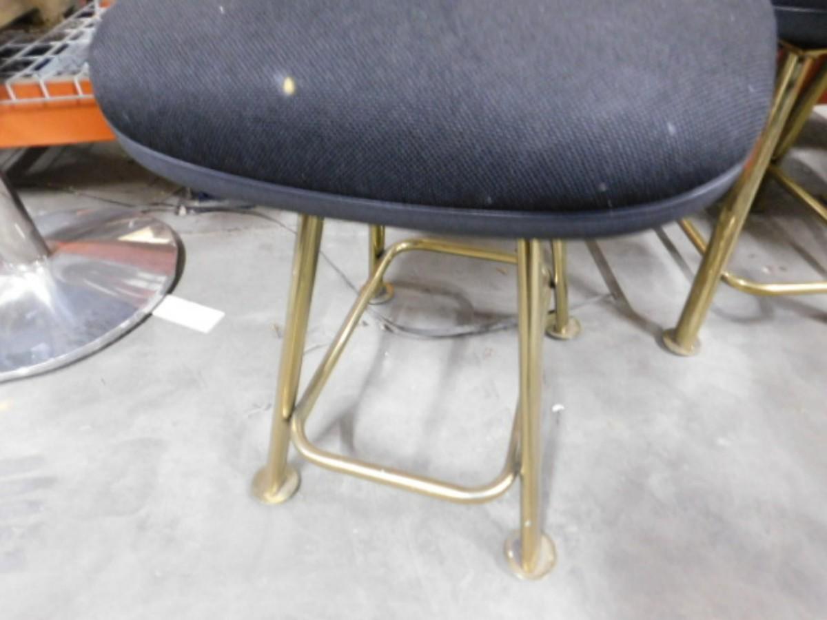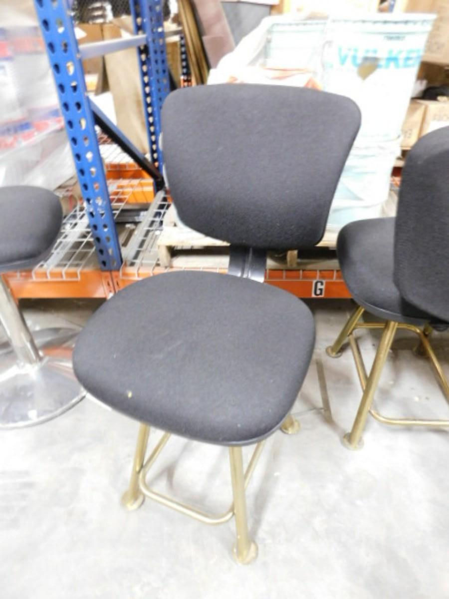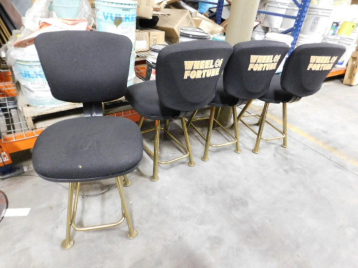 Set of Four Gary Piatt Swivel 'Wheel of Fortune' Fabric Seat Chairs--Standard Height. One chair has small hole on seat as shown