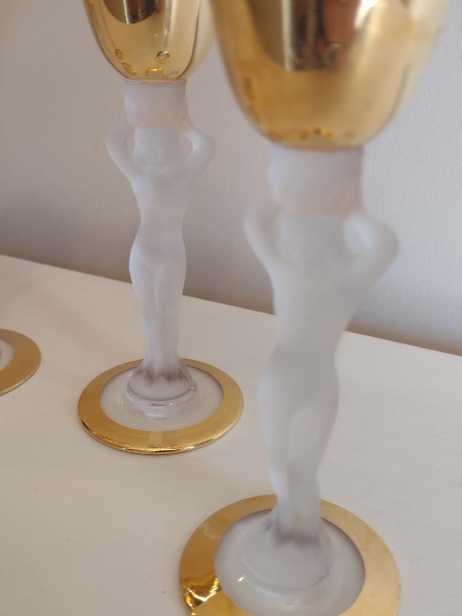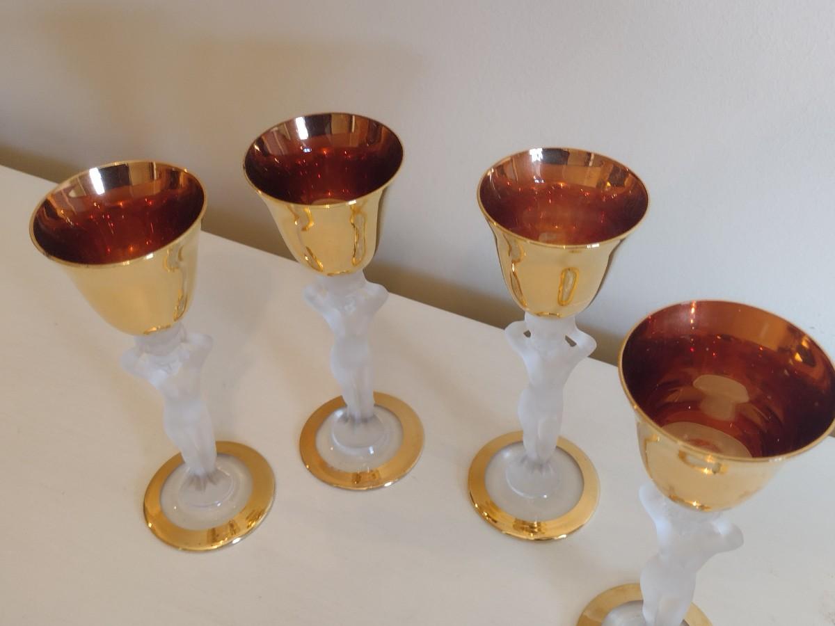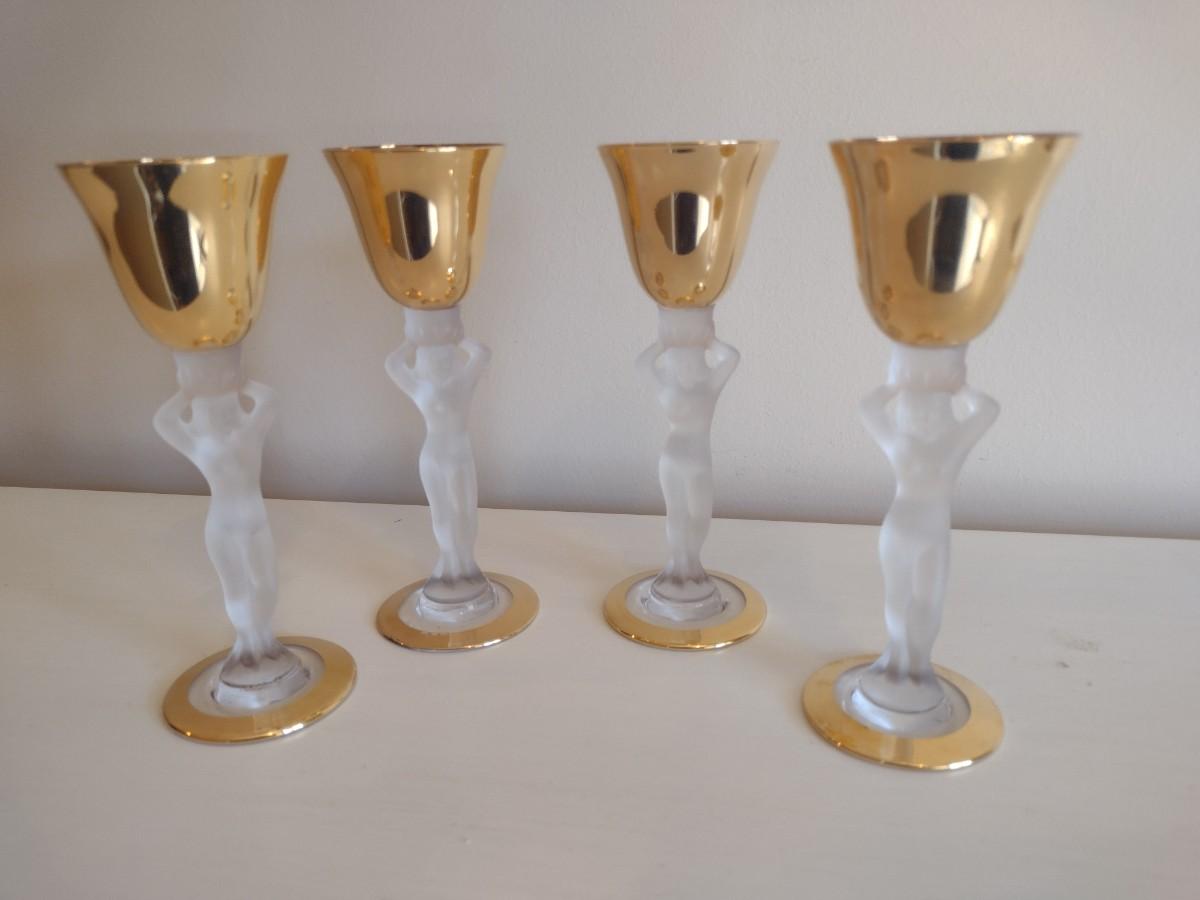 Set of Four Gold Frosted Glass Nude Stemmed Glasses