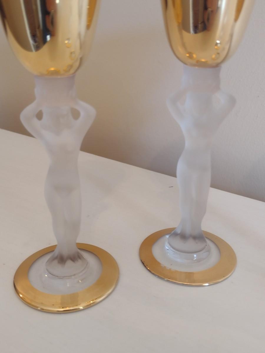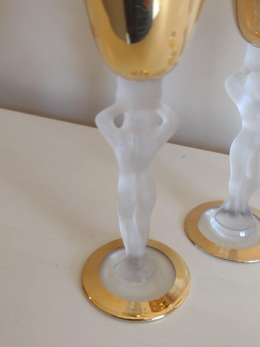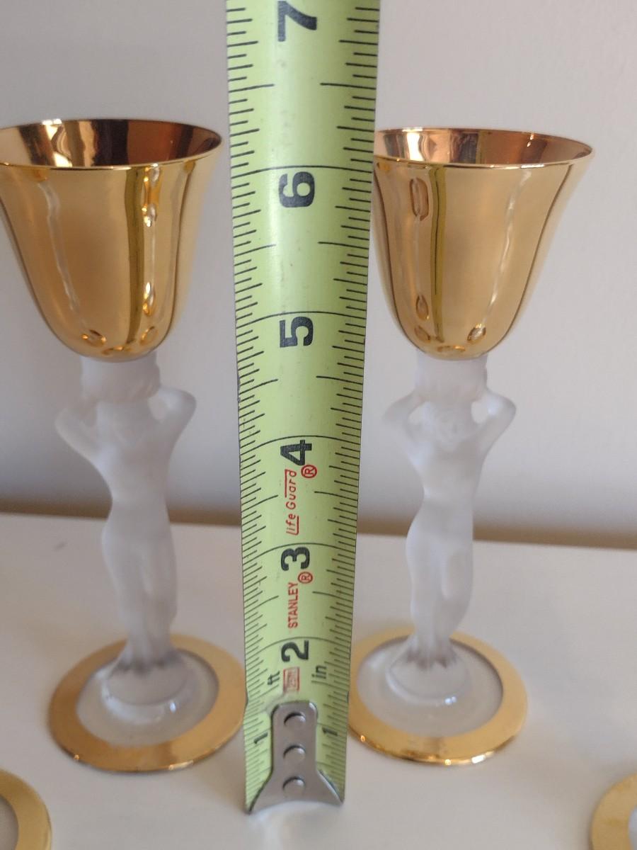 Set of Four Gold Frosted Glass Nude Stemmed Glasses