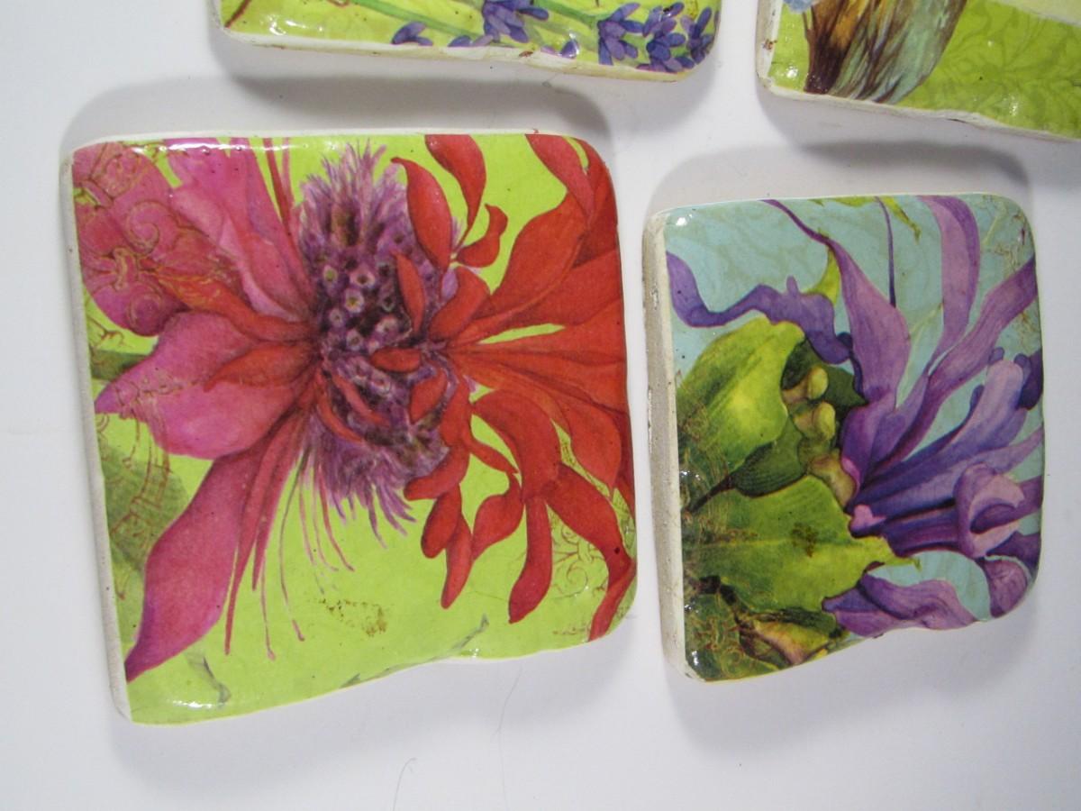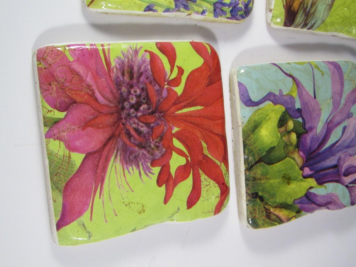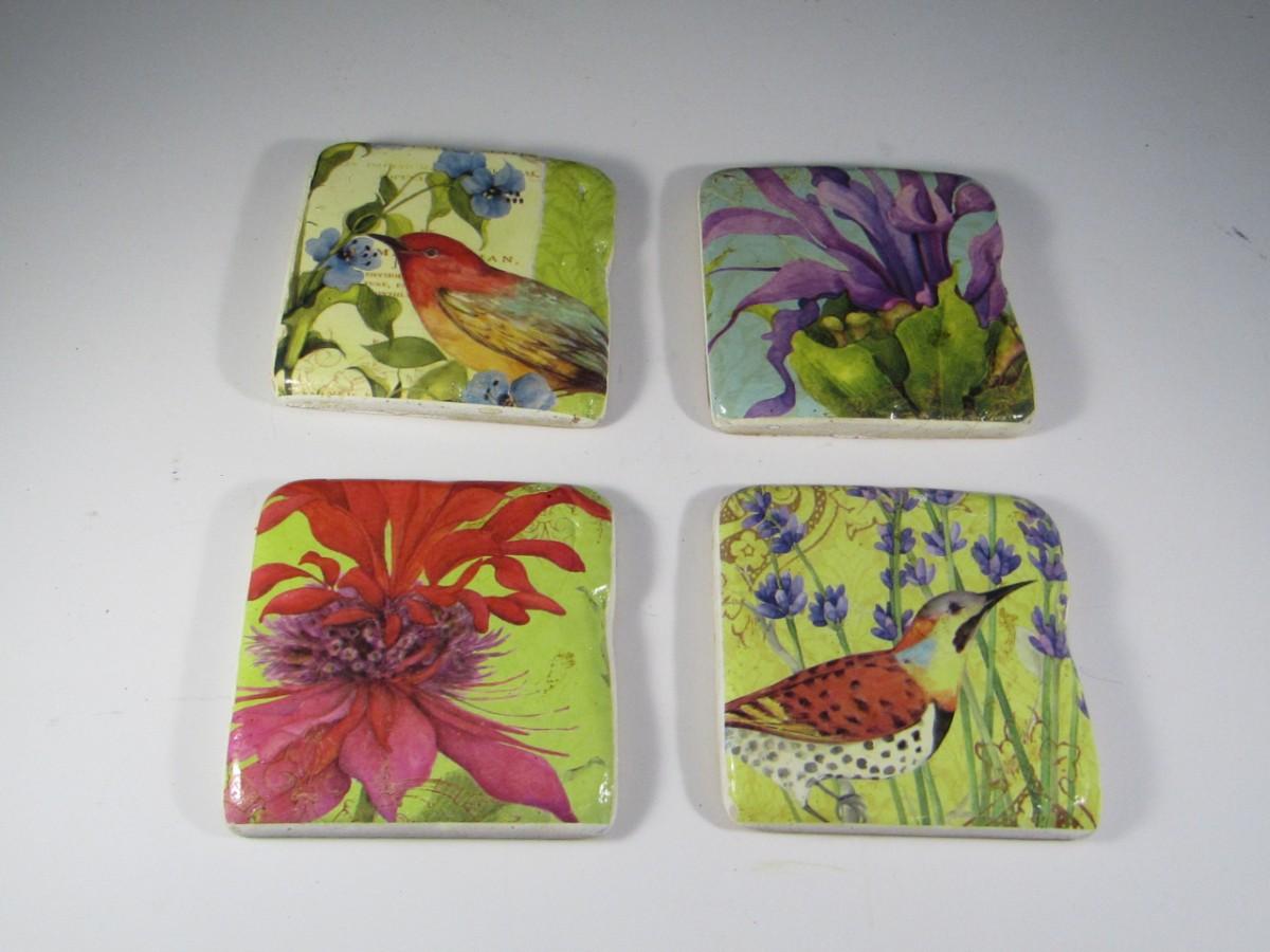 Set of Four Hand Painted Ceramic Tile Coasters by Artist Susan Winget